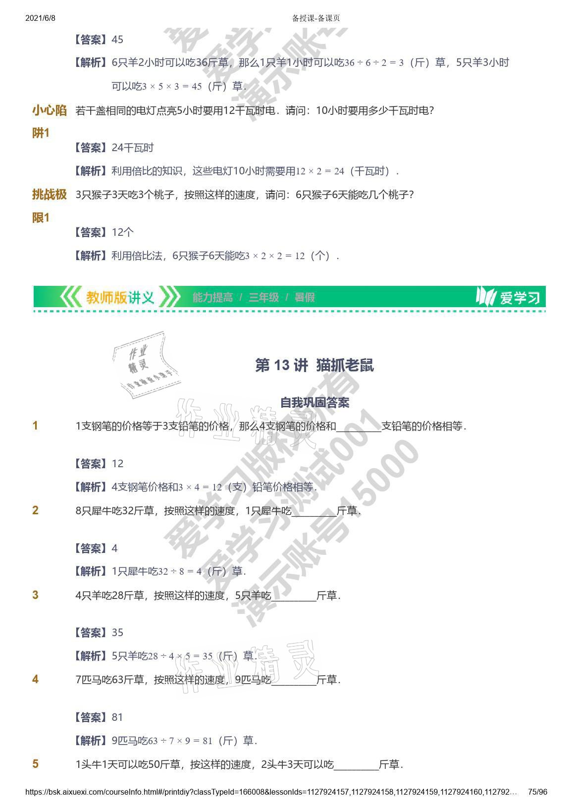 注:目前有些书本章节名称可能整理的还不是很完善,但都是按照顺序排列的,请同学们按照顺序仔细查找。练习册 2021年爱学习数学三年级能力提高体系苏教版 答案主要是用来给同学们做完题方便对答案用的,请勿直接抄袭。