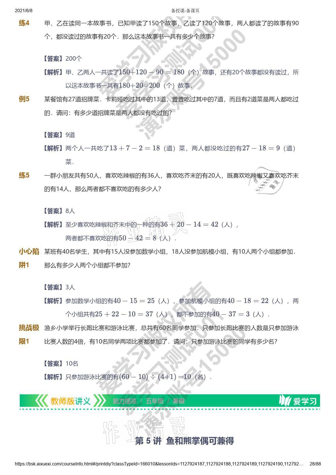 注:目前有些书本章节名称可能整理的还不是很完善,但都是按照顺序排列的,请同学们按照顺序仔细查找。练习册 2021年爱学习数学五年级能力提高体系苏教版 答案主要是用来给同学们做完题方便对答案用的,请勿直接抄袭。