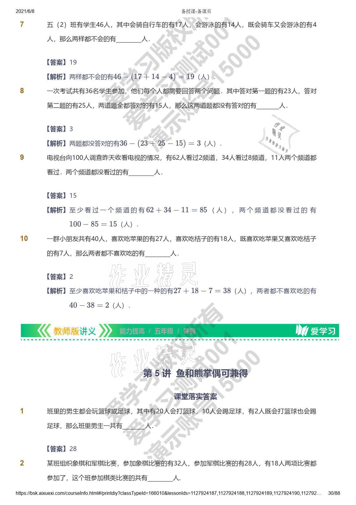 注:目前有些书本章节名称可能整理的还不是很完善,但都是按照顺序排列的,请同学们按照顺序仔细查找。练习册 2021年爱学习数学五年级能力提高体系苏教版 答案主要是用来给同学们做完题方便对答案用的,请勿直接抄袭。