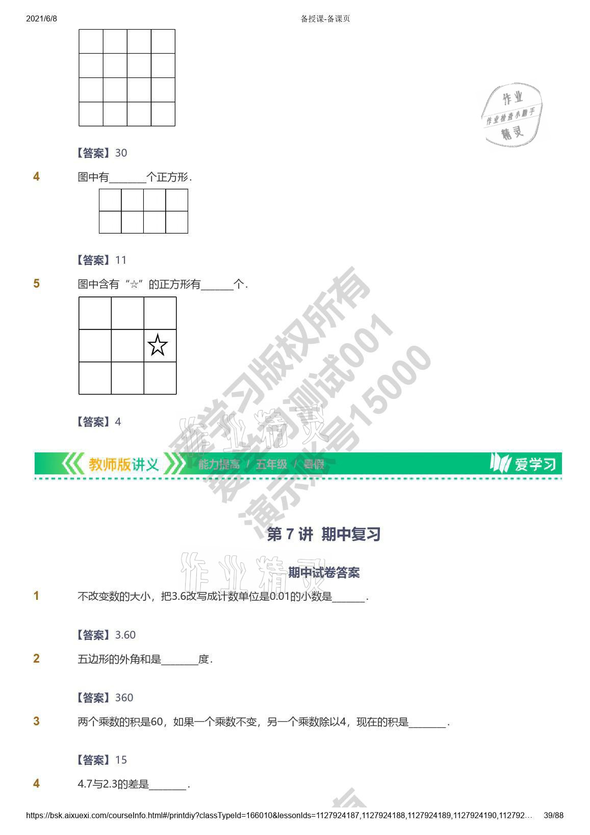 注:目前有些书本章节名称可能整理的还不是很完善,但都是按照顺序排列的,请同学们按照顺序仔细查找。练习册 2021年爱学习数学五年级能力提高体系苏教版 答案主要是用来给同学们做完题方便对答案用的,请勿直接抄袭。