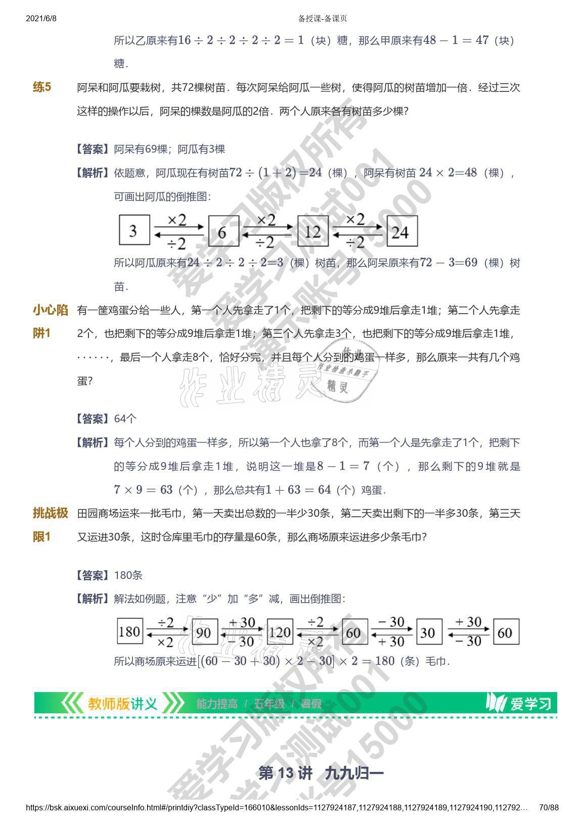 注:目前有些书本章节名称可能整理的还不是很完善,但都是按照顺序排列的,请同学们按照顺序仔细查找。练习册 2021年爱学习数学五年级能力提高体系苏教版 答案主要是用来给同学们做完题方便对答案用的,请勿直接抄袭。