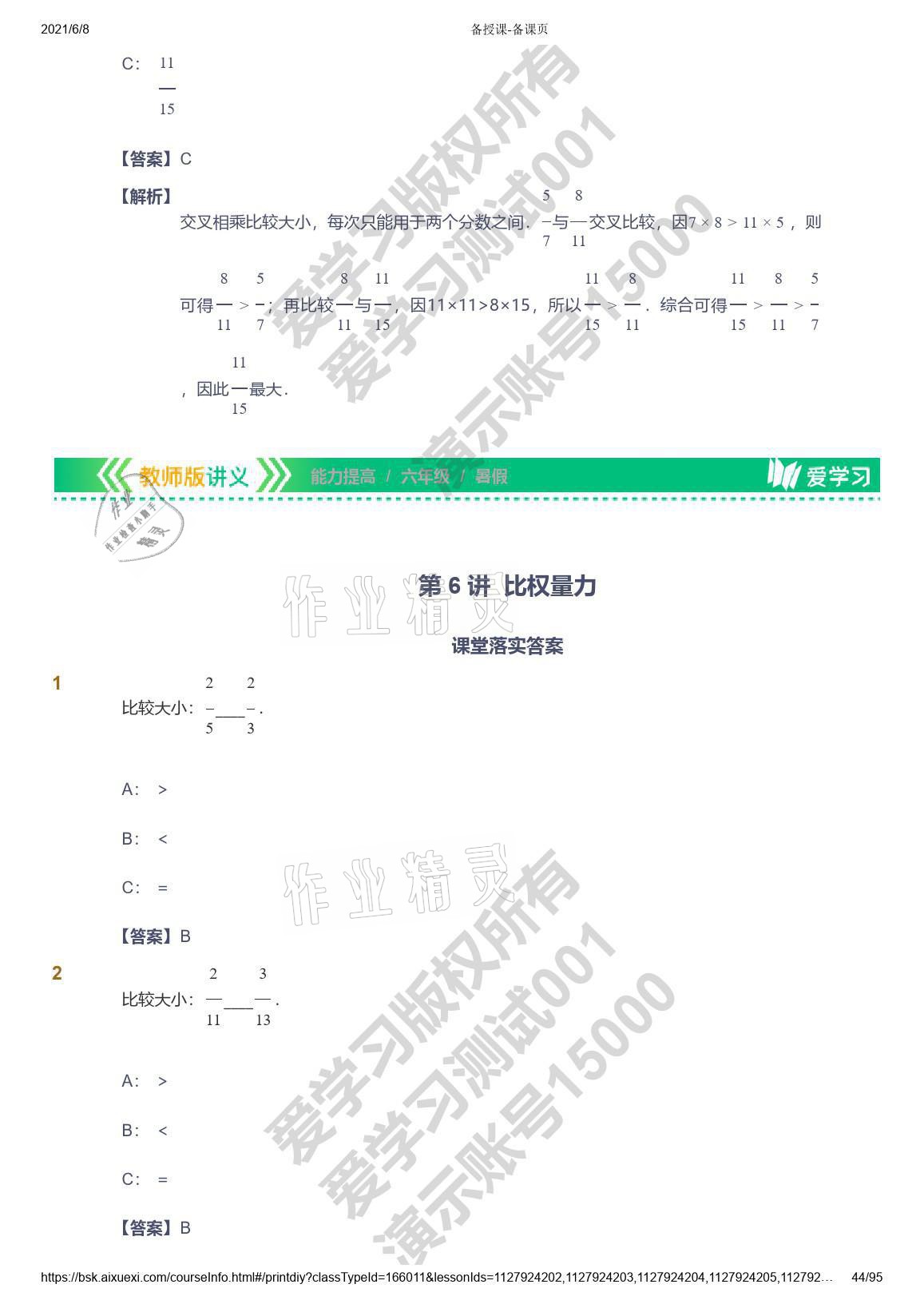注:目前有些书本章节名称可能整理的还不是很完善,但都是按照顺序排列的,请同学们按照顺序仔细查找。练习册 2021年爱学习数学能力提高六年级苏教版首都师范大学出版社 答案主要是用来给同学们做完题方便对答案用的,请勿直接抄袭。