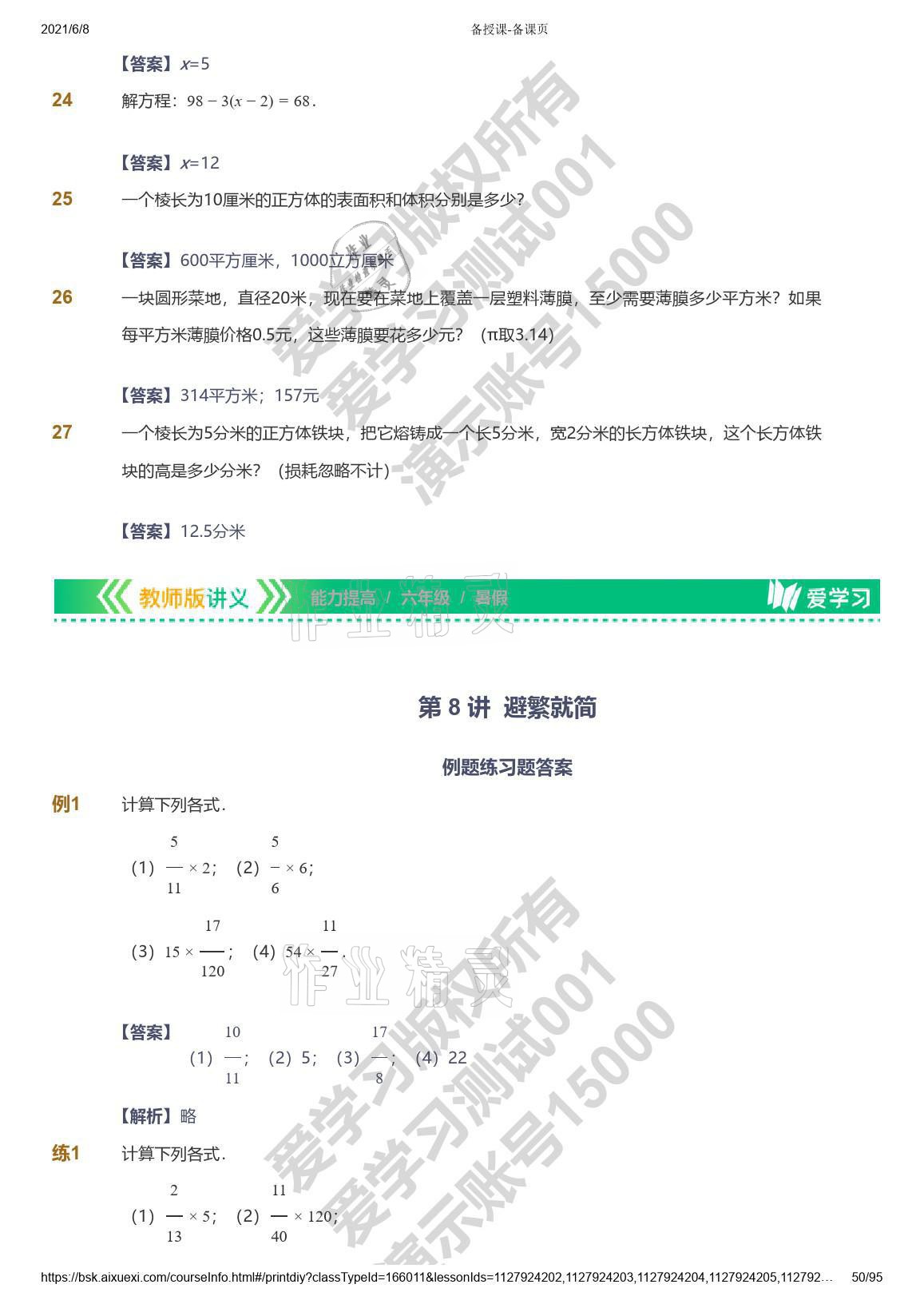 注:目前有些书本章节名称可能整理的还不是很完善,但都是按照顺序排列的,请同学们按照顺序仔细查找。练习册 2021年爱学习数学能力提高六年级苏教版首都师范大学出版社 答案主要是用来给同学们做完题方便对答案用的,请勿直接抄袭。