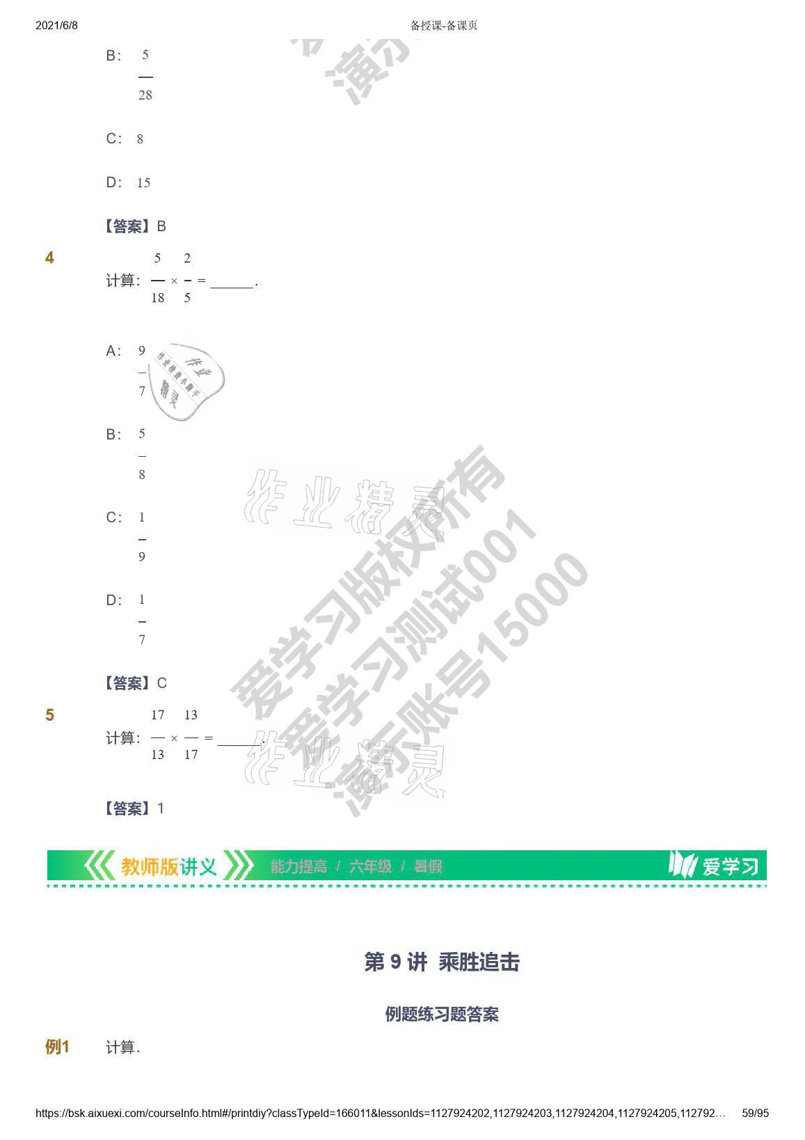注:目前有些书本章节名称可能整理的还不是很完善,但都是按照顺序排列的,请同学们按照顺序仔细查找。练习册 2021年爱学习数学能力提高六年级苏教版首都师范大学出版社 答案主要是用来给同学们做完题方便对答案用的,请勿直接抄袭。