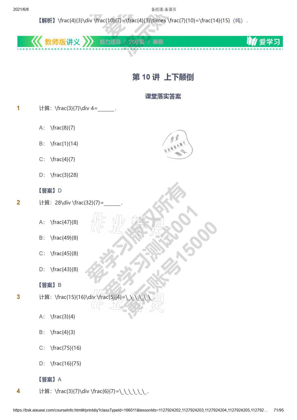 注:目前有些书本章节名称可能整理的还不是很完善,但都是按照顺序排列的,请同学们按照顺序仔细查找。练习册 2021年爱学习数学能力提高六年级苏教版首都师范大学出版社 答案主要是用来给同学们做完题方便对答案用的,请勿直接抄袭。