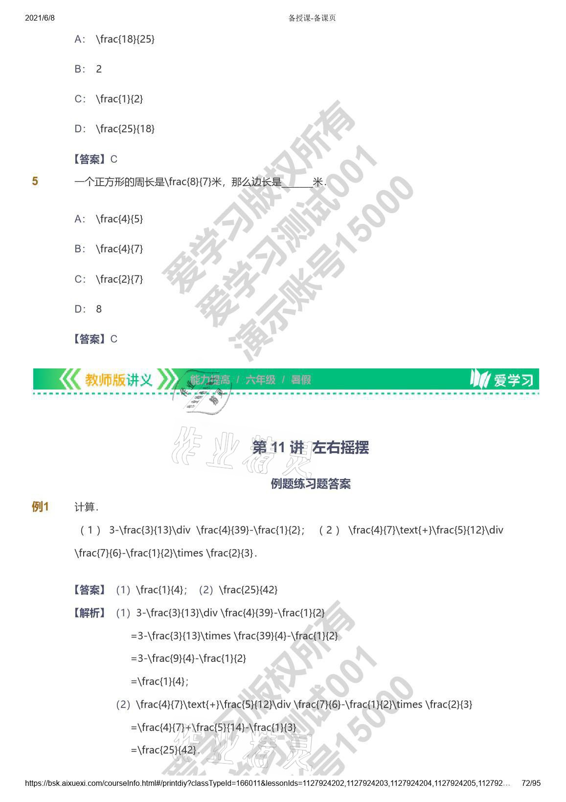 注:目前有些书本章节名称可能整理的还不是很完善,但都是按照顺序排列的,请同学们按照顺序仔细查找。练习册 2021年爱学习数学能力提高六年级苏教版首都师范大学出版社 答案主要是用来给同学们做完题方便对答案用的,请勿直接抄袭。