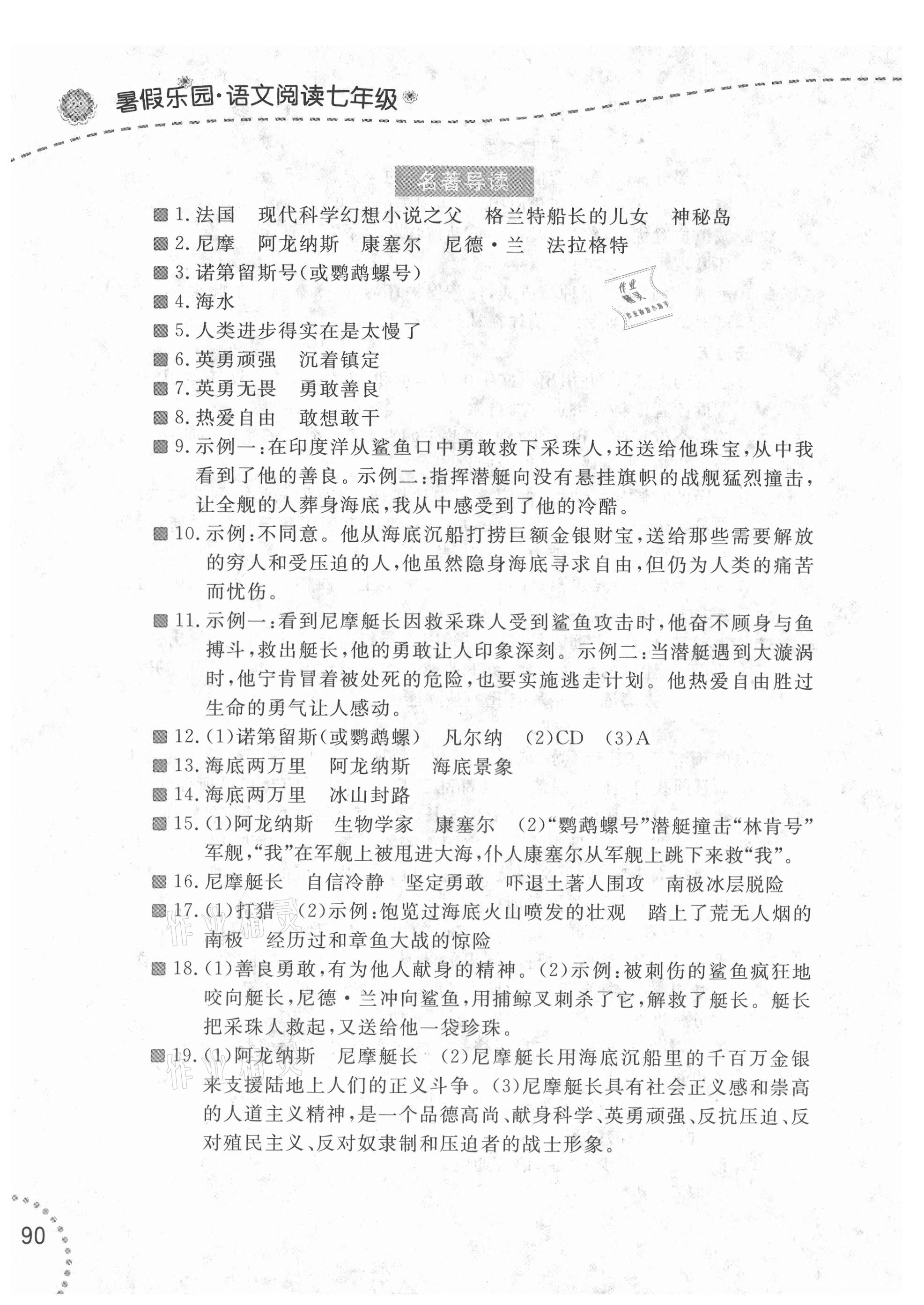 2021年暑假乐园辽宁师范大学出版社七年级文科版