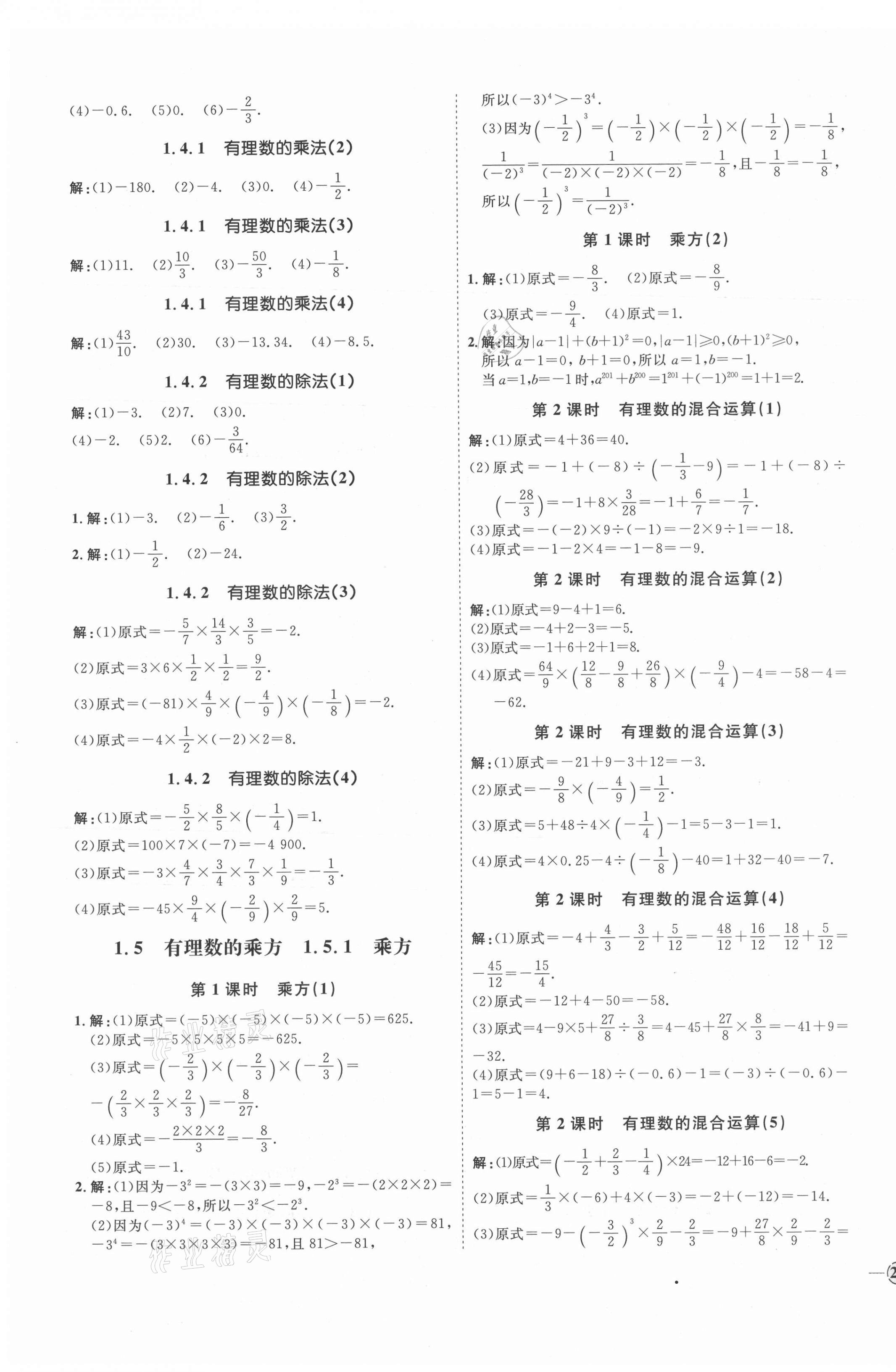 2021年优加学案课时通七年级数学上册人教版河北专版