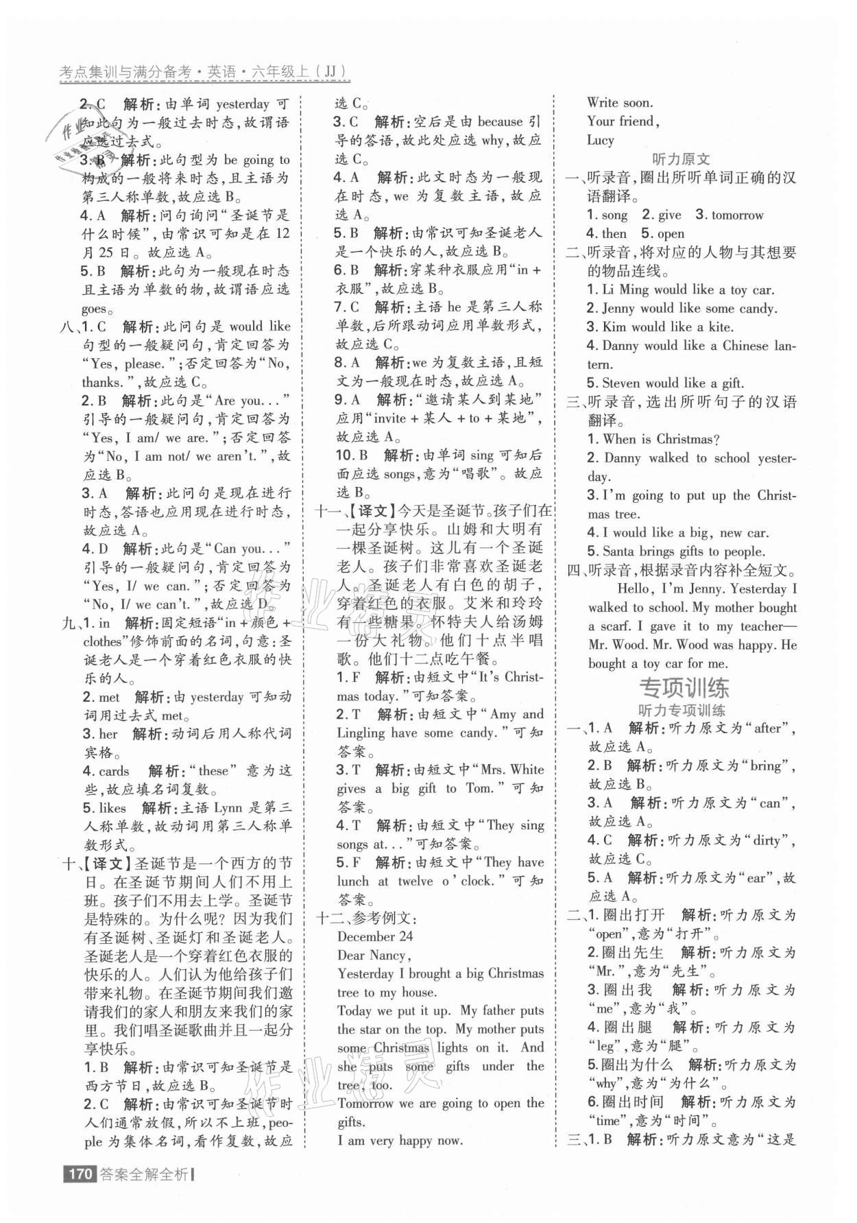 注:目前有些书本章节名称可能整理的还不是很完善,但都是按照顺序排列的,请同学们按照顺序仔细查找。练习册 2021年考点集训与满分备考六年级英语上册冀教版 答案主要是用来给同学们做完题方便对答案用的,请勿直接抄袭。