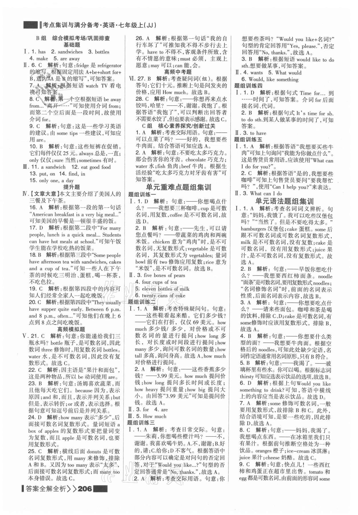 注:目前有些书本章节名称可能整理的还不是很完善,但都是按照顺序排列的,请同学们按照顺序仔细查找。练习册 2021年考点集训与满分备考七年级英语上册冀教版 答案主要是用来给同学们做完题方便对答案用的,请勿直接抄袭。