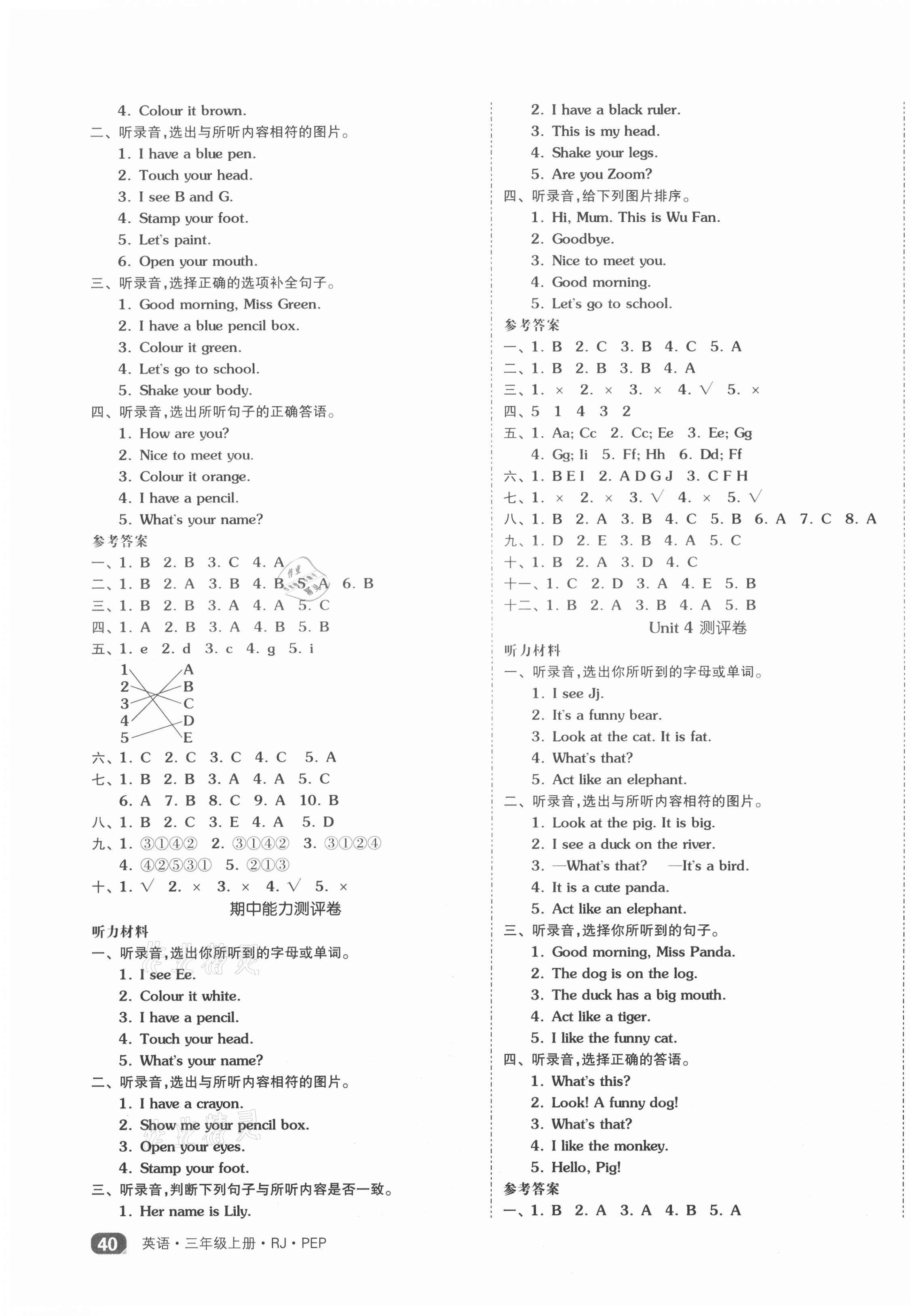 注:目前有些书本章节名称可能整理的还不是很完善,但都是按照顺序排列的,请同学们按照顺序仔细查找。练习册 2021年全品小复习三年级英语上册人教PEP版 答案主要是用来给同学们做完题方便对答案用的,请勿直接抄袭。