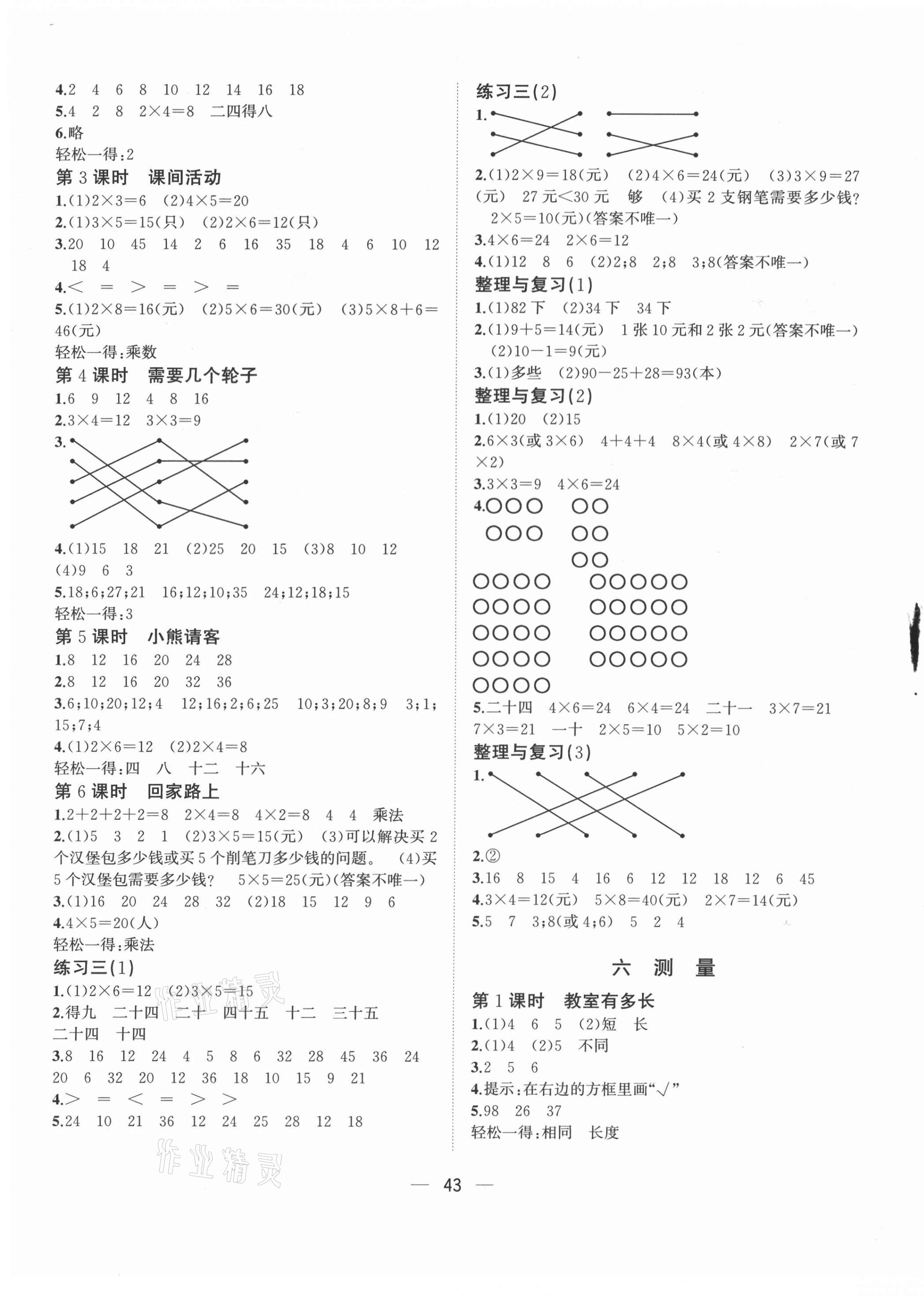 注:目前有些书本章节名称可能整理的还不是很完善,但都是按照顺序排列的,请同学们按照顺序仔细查找。练习册 2021年课课优课堂小作业二年级数学上册北师大版 答案主要是用来给同学们做完题方便对答案用的,请勿直接抄袭。