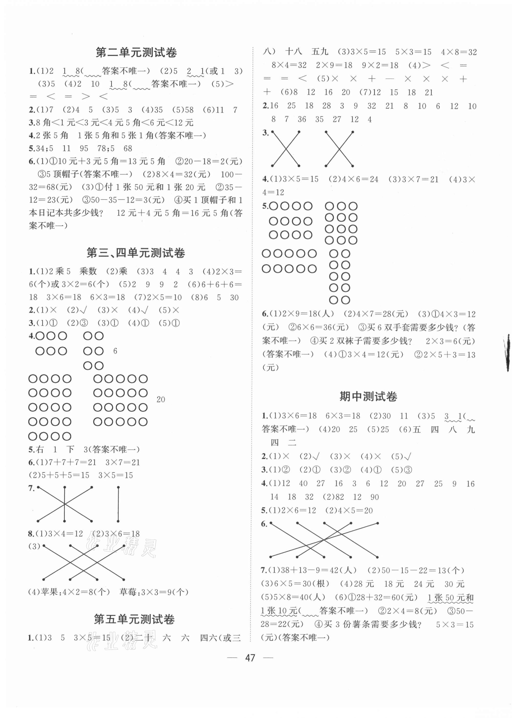注:目前有些书本章节名称可能整理的还不是很完善,但都是按照顺序排列的,请同学们按照顺序仔细查找。练习册 2021年课课优课堂小作业二年级数学上册北师大版 答案主要是用来给同学们做完题方便对答案用的,请勿直接抄袭。