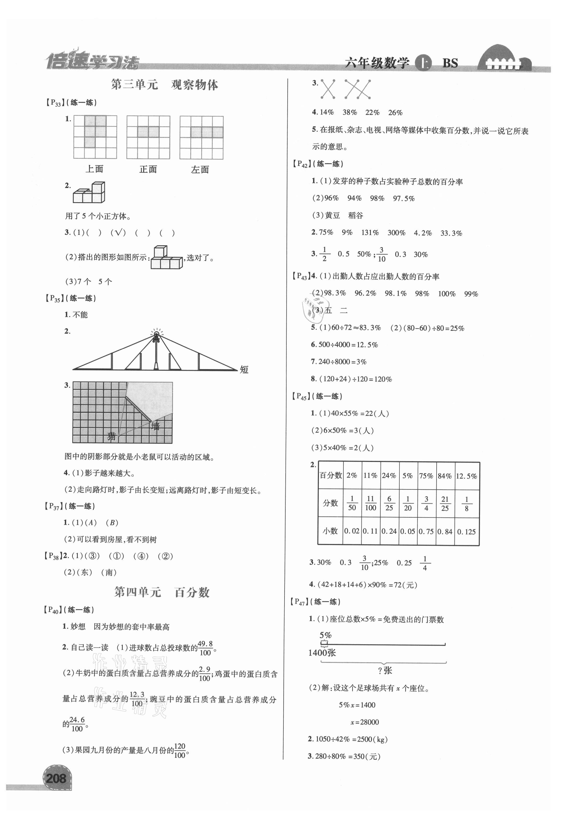 注:目前有些书本章节名称可能整理的还不是很完善,但都是按照顺序排列的,请同学们按照顺序仔细查找。练习册 2021年倍速学习法六年级数学上册北师大版 答案主要是用来给同学们做完题方便对答案用的,请勿直接抄袭。