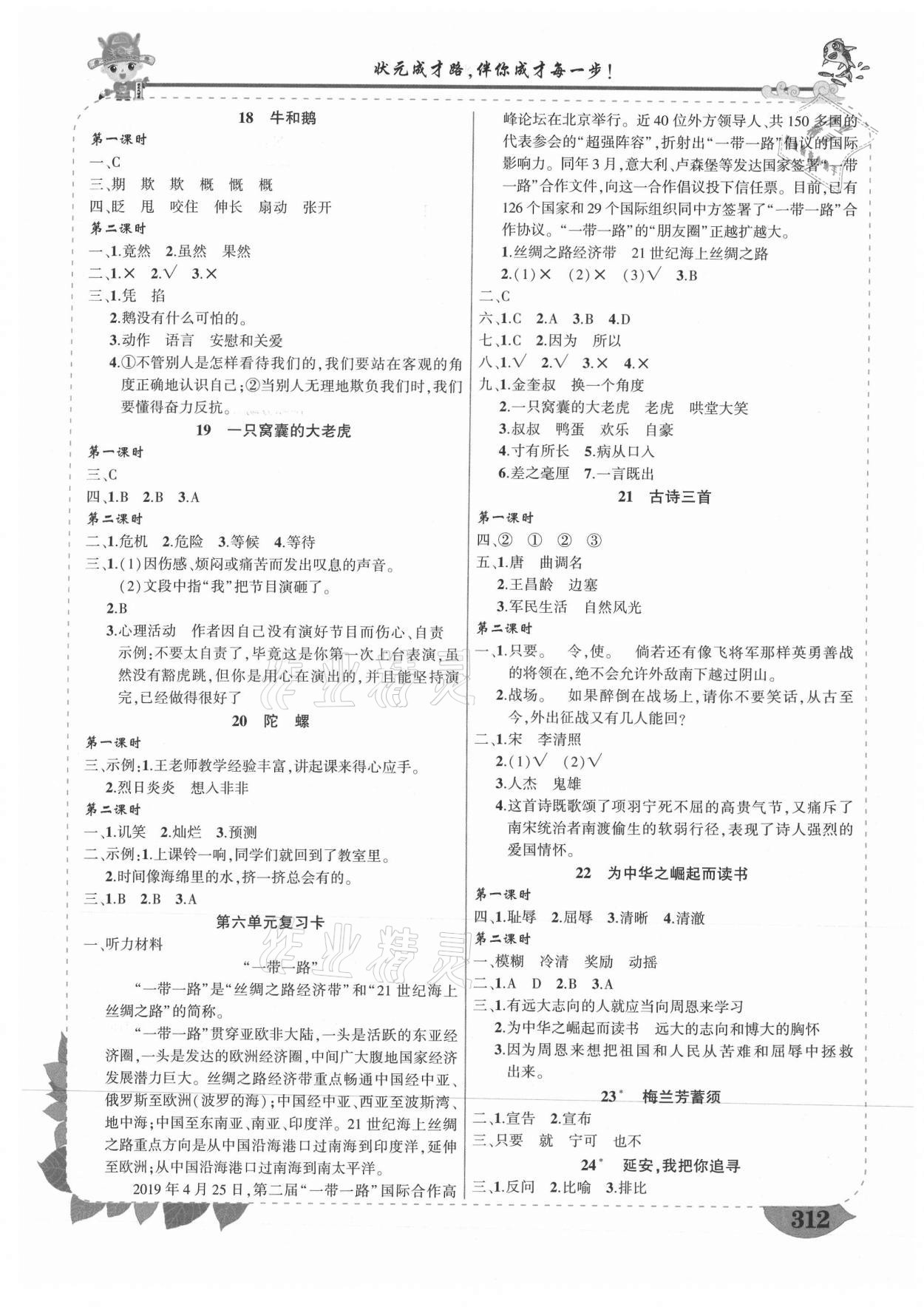 注:目前有些书本章节名称可能整理的还不是很完善,但都是按照顺序排列的,请同学们按照顺序仔细查找。练习册 2021年黄冈状元成才路状元大课堂四年级语文上册人教版山西专版 答案主要是用来给同学们做完题方便对答案用的,请勿直接抄袭。