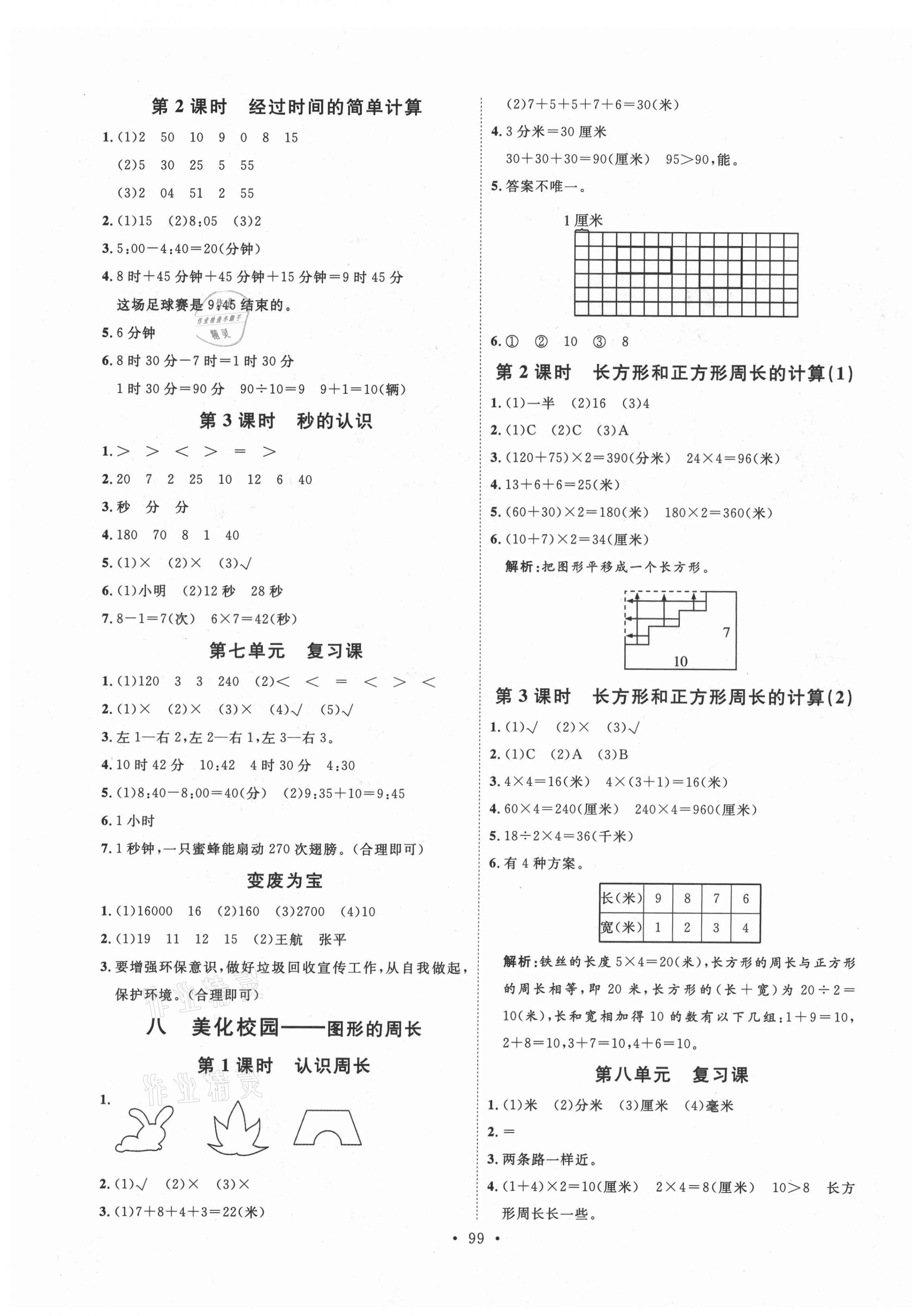 2021年每时每刻快乐优加作业本三年级数学上册青岛版