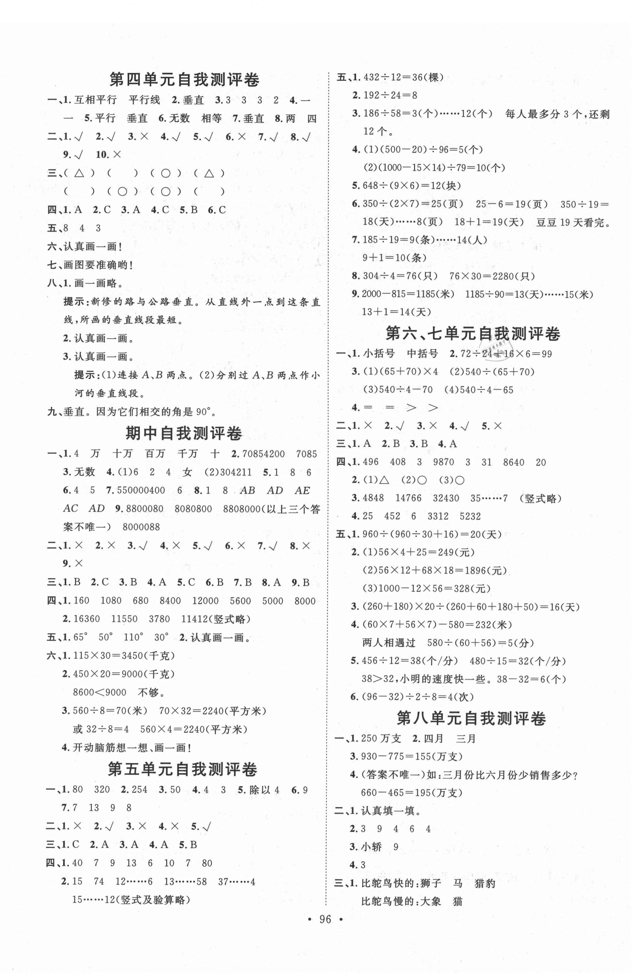 注:目前有些书本章节名称可能整理的还不是很完善,但都是按照顺序排列的,请同学们按照顺序仔细查找。练习册 2021年每时每刻快乐优加作业本四年级数学上册青岛版 答案主要是用来给同学们做完题方便对答案用的,请勿直接抄袭。