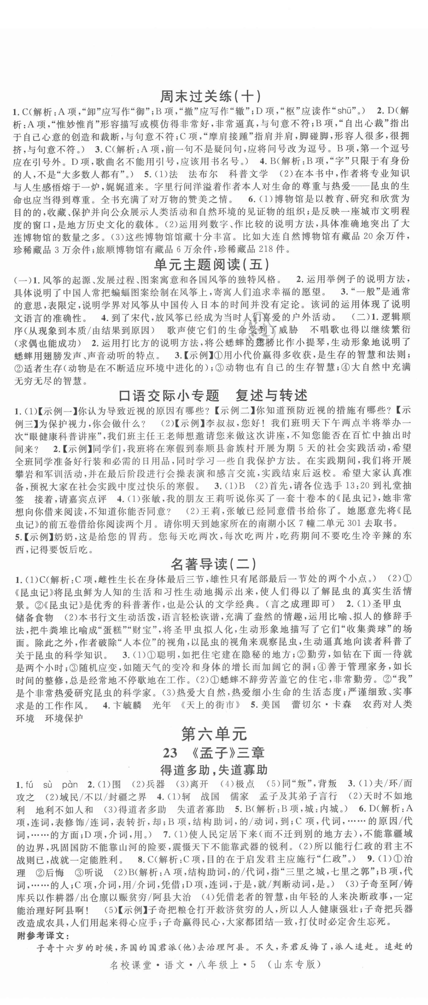 注:目前有些书本章节名称可能整理的还不是很完善,但都是按照顺序排列的,请同学们按照顺序仔细查找。练习册 2021年名校课堂八年级语文上册人教版五四学制山东专版 答案主要是用来给同学们做完题方便对答案用的,请勿直接抄袭。