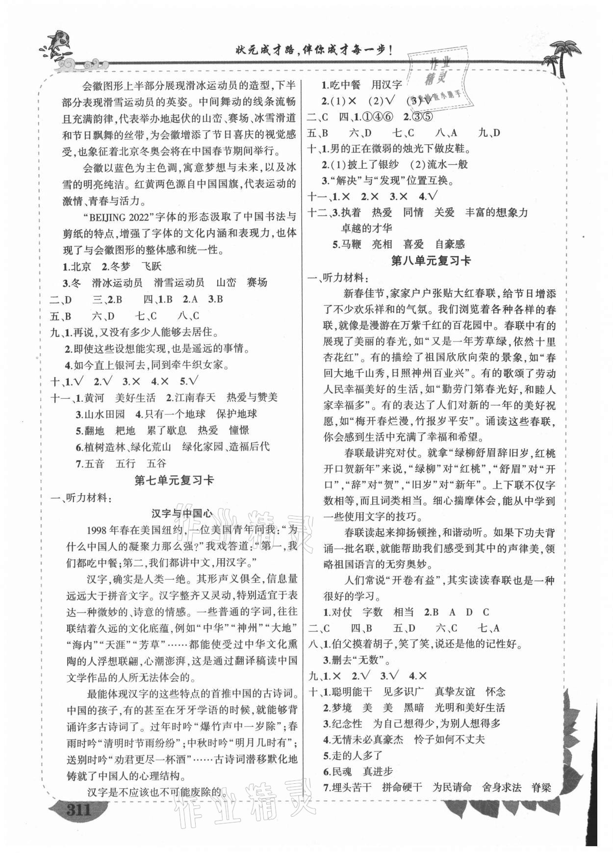 注:目前有些书本章节名称可能整理的还不是很完善,但都是按照顺序排列的,请同学们按照顺序仔细查找。练习册 2021年黄冈状元成才路状元大课堂六年级语文上册人教版重庆专版 答案主要是用来给同学们做完题方便对答案用的,请勿直接抄袭。