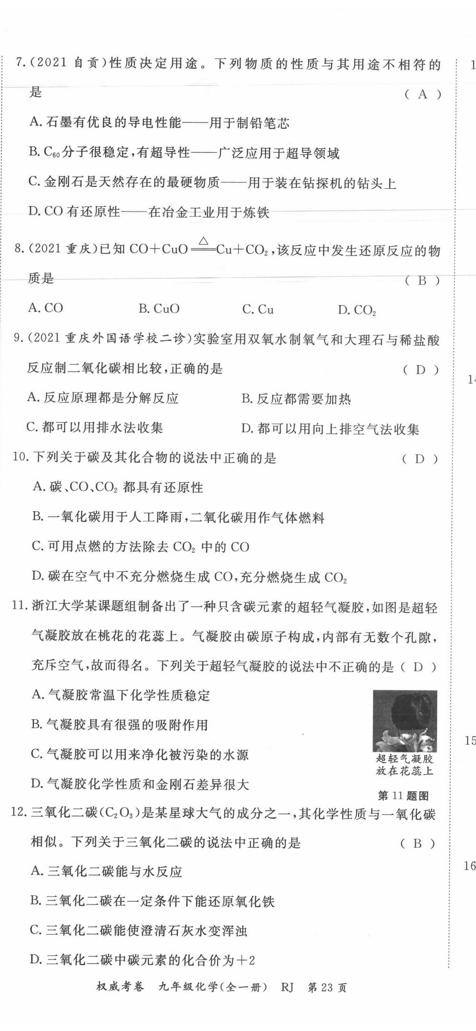 注:目前有些书本章节名称可能整理的还不是很完善,但都是按照顺序排列的,请同学们按照顺序仔细查找。练习册 2021年权威考卷九年级化学全一册人教版 答案主要是用来给同学们做完题方便对答案用的,请勿直接抄袭。