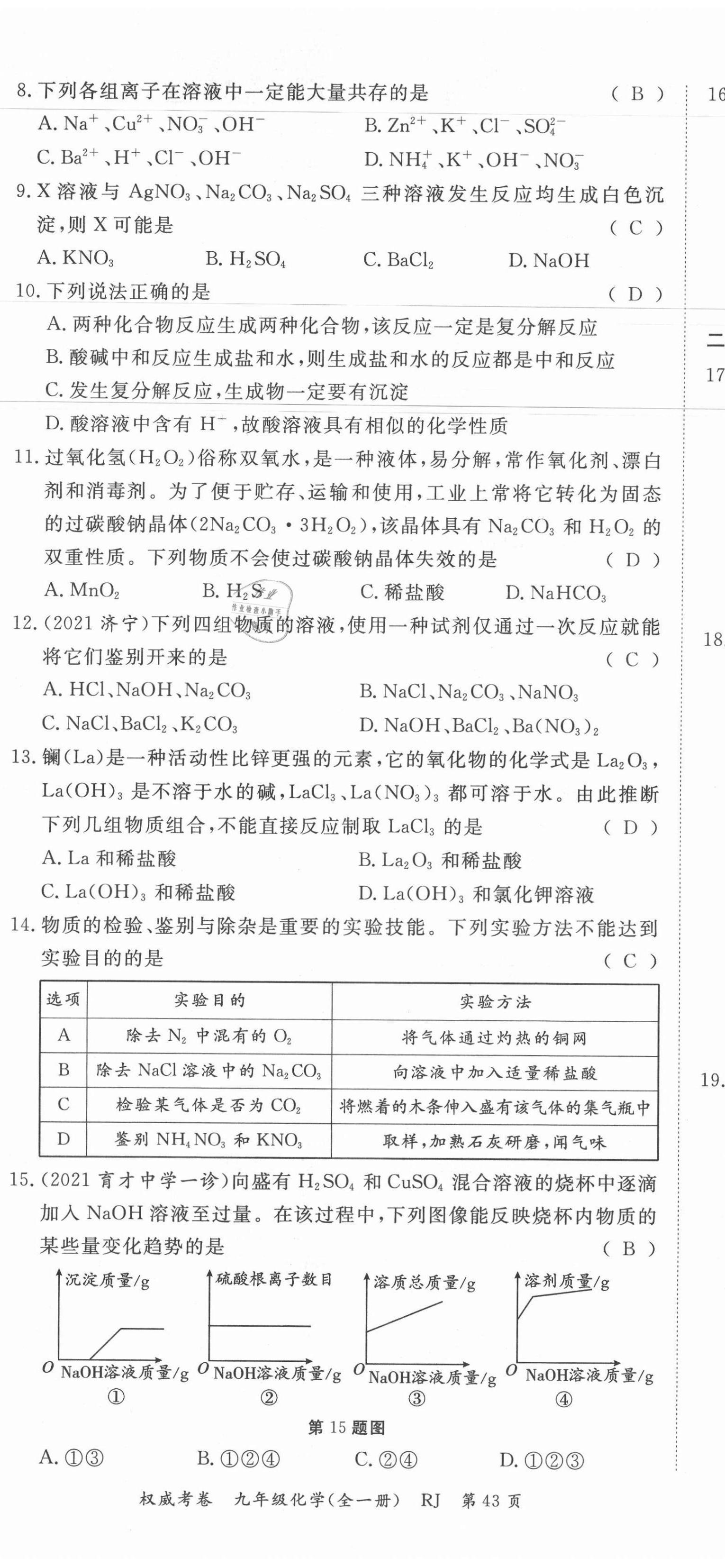 注:目前有些书本章节名称可能整理的还不是很完善,但都是按照顺序排列的,请同学们按照顺序仔细查找。练习册 2021年权威考卷九年级化学全一册人教版 答案主要是用来给同学们做完题方便对答案用的,请勿直接抄袭。