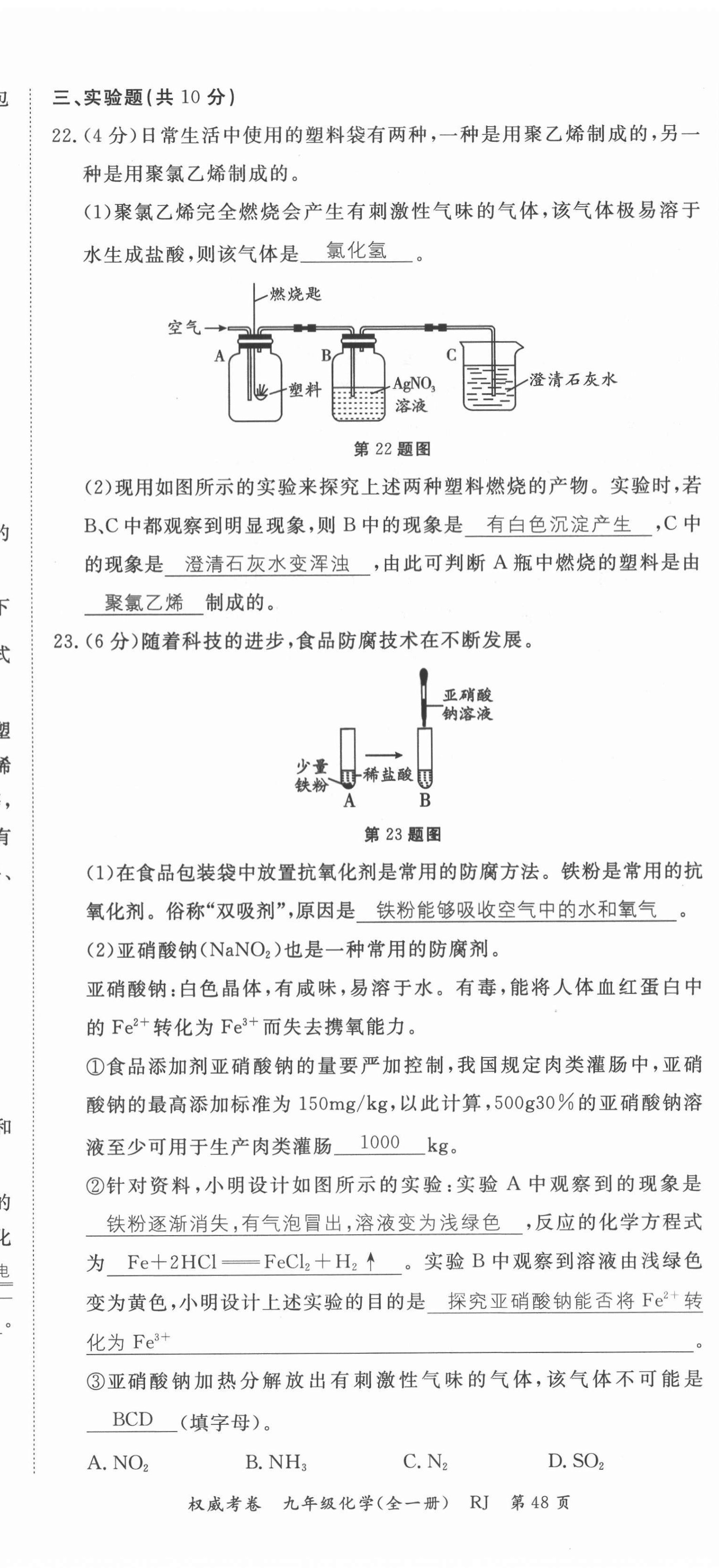 注:目前有些书本章节名称可能整理的还不是很完善,但都是按照顺序排列的,请同学们按照顺序仔细查找。练习册 2021年权威考卷九年级化学全一册人教版 答案主要是用来给同学们做完题方便对答案用的,请勿直接抄袭。