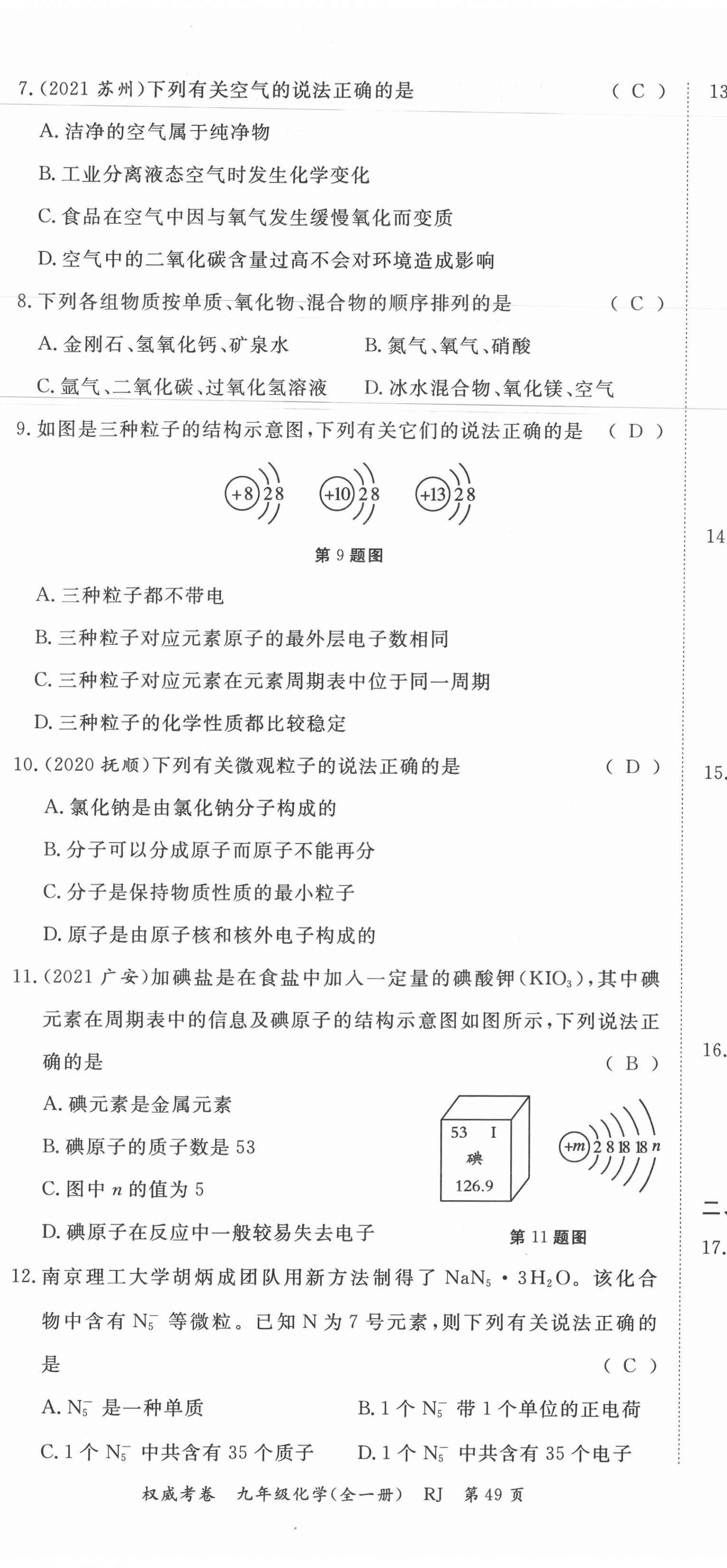 注:目前有些书本章节名称可能整理的还不是很完善,但都是按照顺序排列的,请同学们按照顺序仔细查找。练习册 2021年权威考卷九年级化学全一册人教版 答案主要是用来给同学们做完题方便对答案用的,请勿直接抄袭。