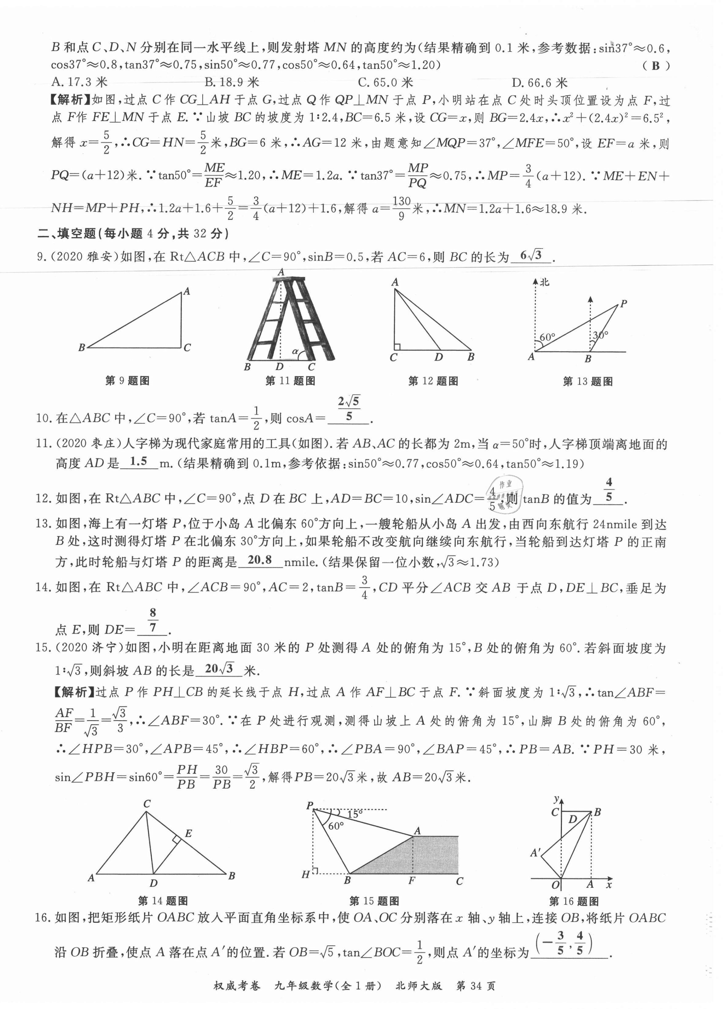 注:目前有些书本章节名称可能整理的还不是很完善,但都是按照顺序排列的,请同学们按照顺序仔细查找。练习册 2021年权威考卷九年级数学全一册北师大版 答案主要是用来给同学们做完题方便对答案用的,请勿直接抄袭。