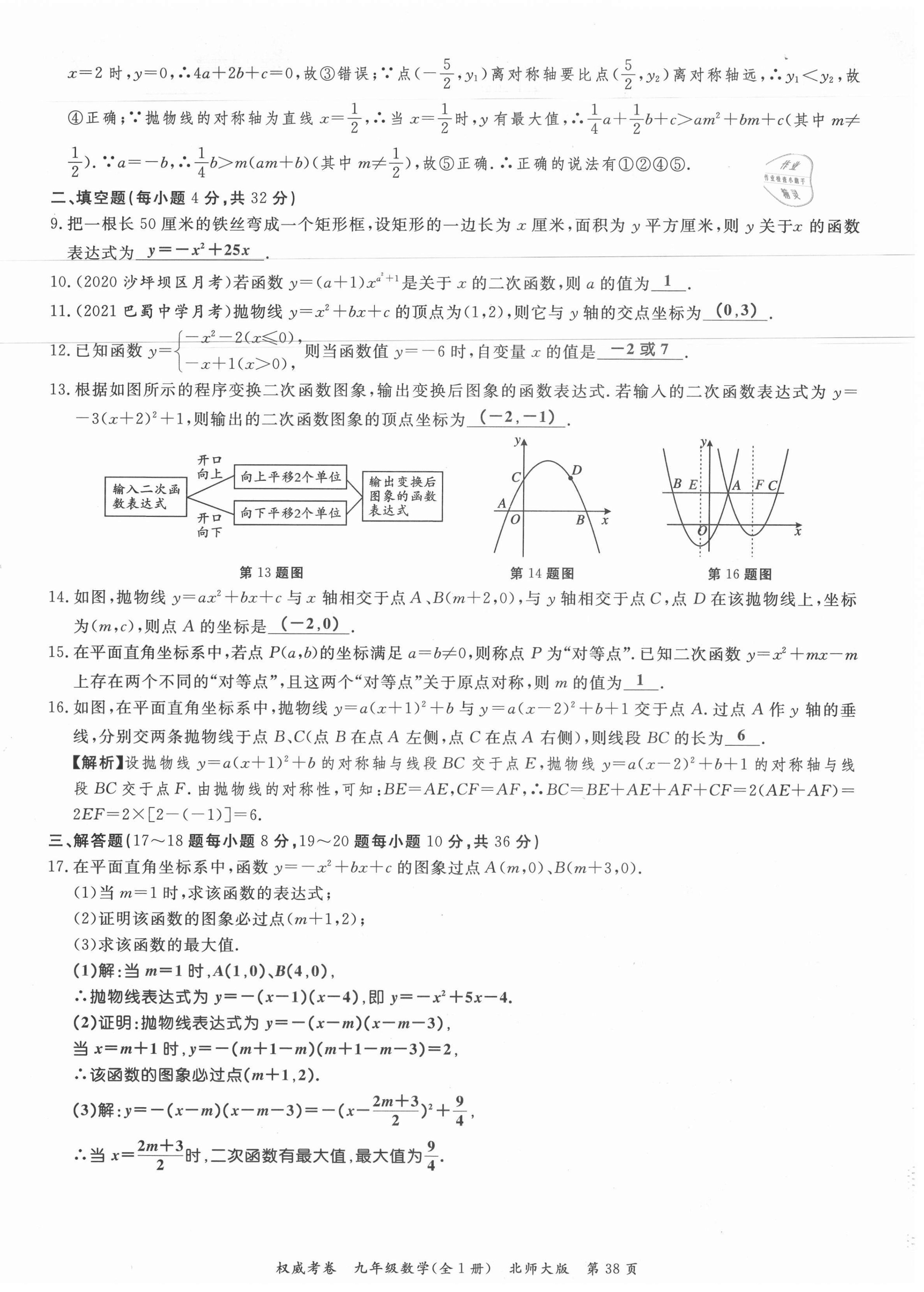 注:目前有些书本章节名称可能整理的还不是很完善,但都是按照顺序排列的,请同学们按照顺序仔细查找。练习册 2021年权威考卷九年级数学全一册北师大版 答案主要是用来给同学们做完题方便对答案用的,请勿直接抄袭。