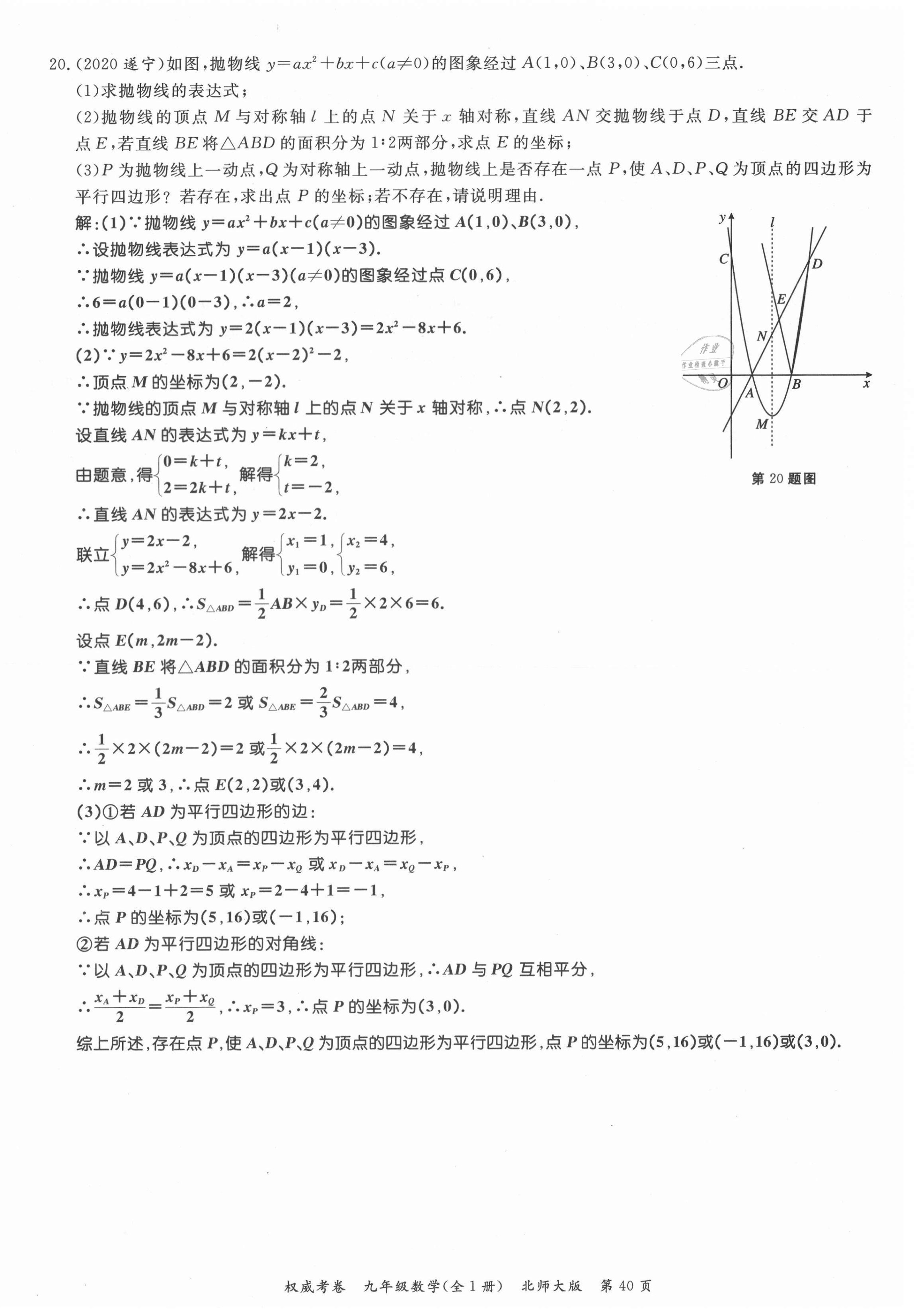 注:目前有些书本章节名称可能整理的还不是很完善,但都是按照顺序排列的,请同学们按照顺序仔细查找。练习册 2021年权威考卷九年级数学全一册北师大版 答案主要是用来给同学们做完题方便对答案用的,请勿直接抄袭。