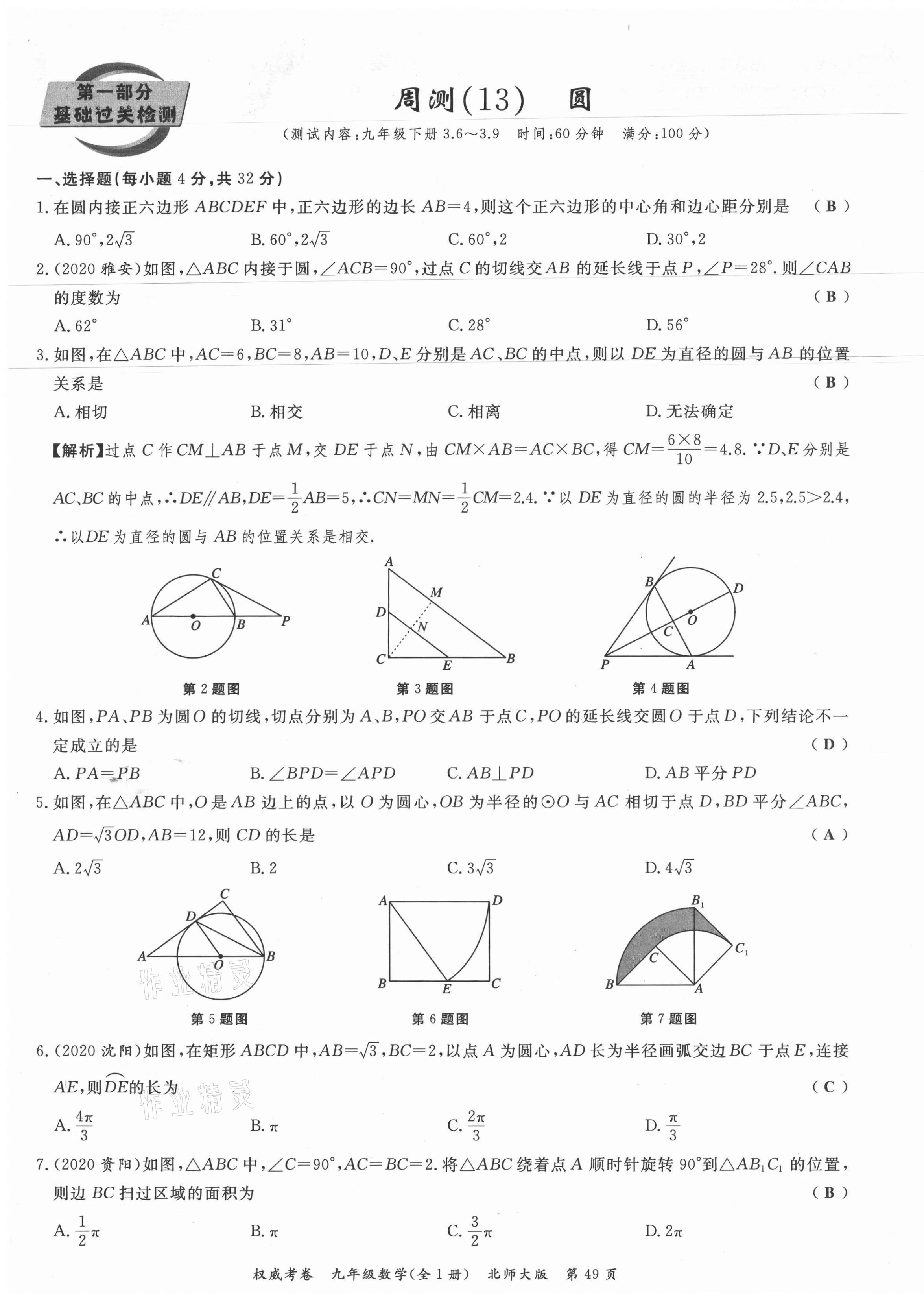 注:目前有些书本章节名称可能整理的还不是很完善,但都是按照顺序排列的,请同学们按照顺序仔细查找。练习册 2021年权威考卷九年级数学全一册北师大版 答案主要是用来给同学们做完题方便对答案用的,请勿直接抄袭。