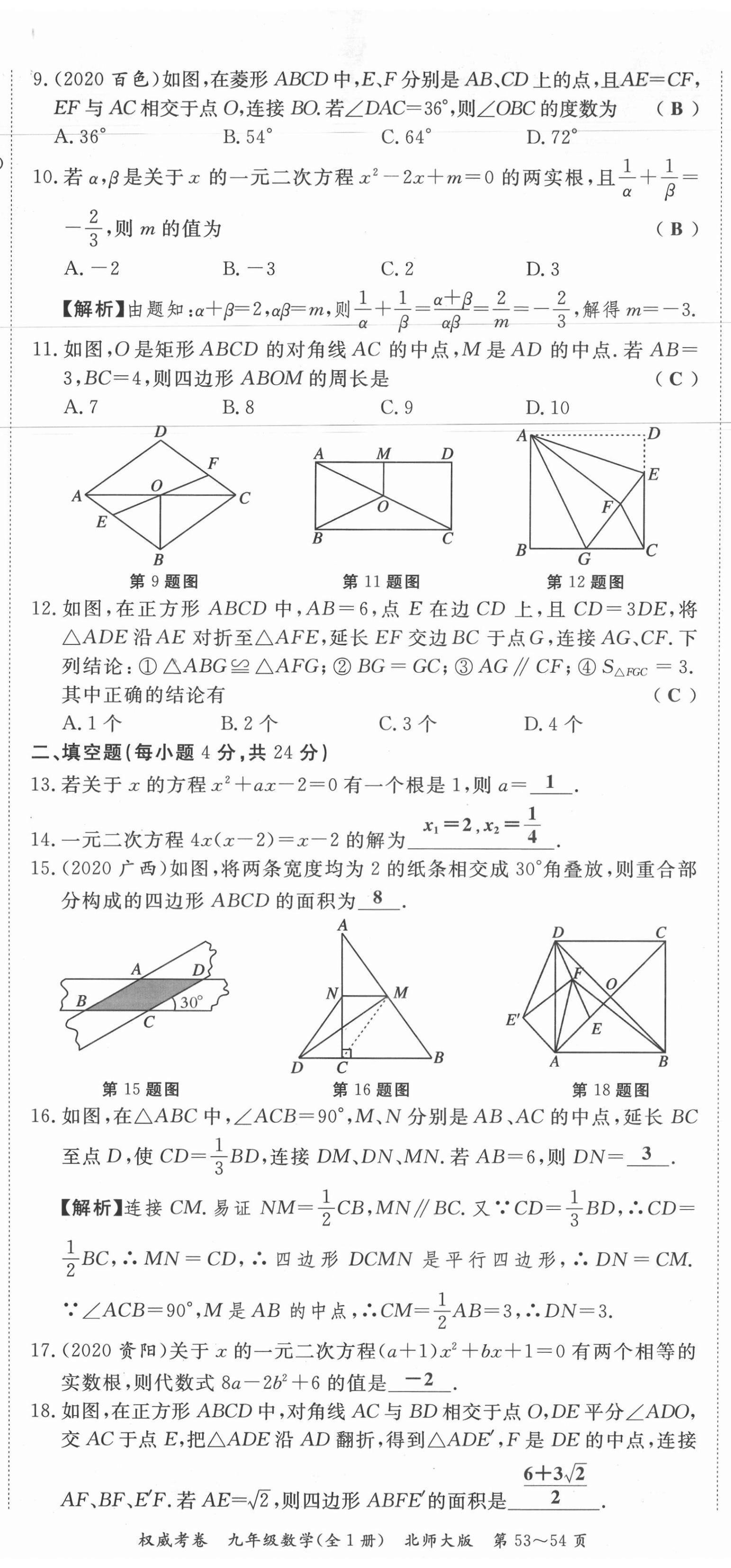 注:目前有些书本章节名称可能整理的还不是很完善,但都是按照顺序排列的,请同学们按照顺序仔细查找。练习册 2021年权威考卷九年级数学全一册北师大版 答案主要是用来给同学们做完题方便对答案用的,请勿直接抄袭。