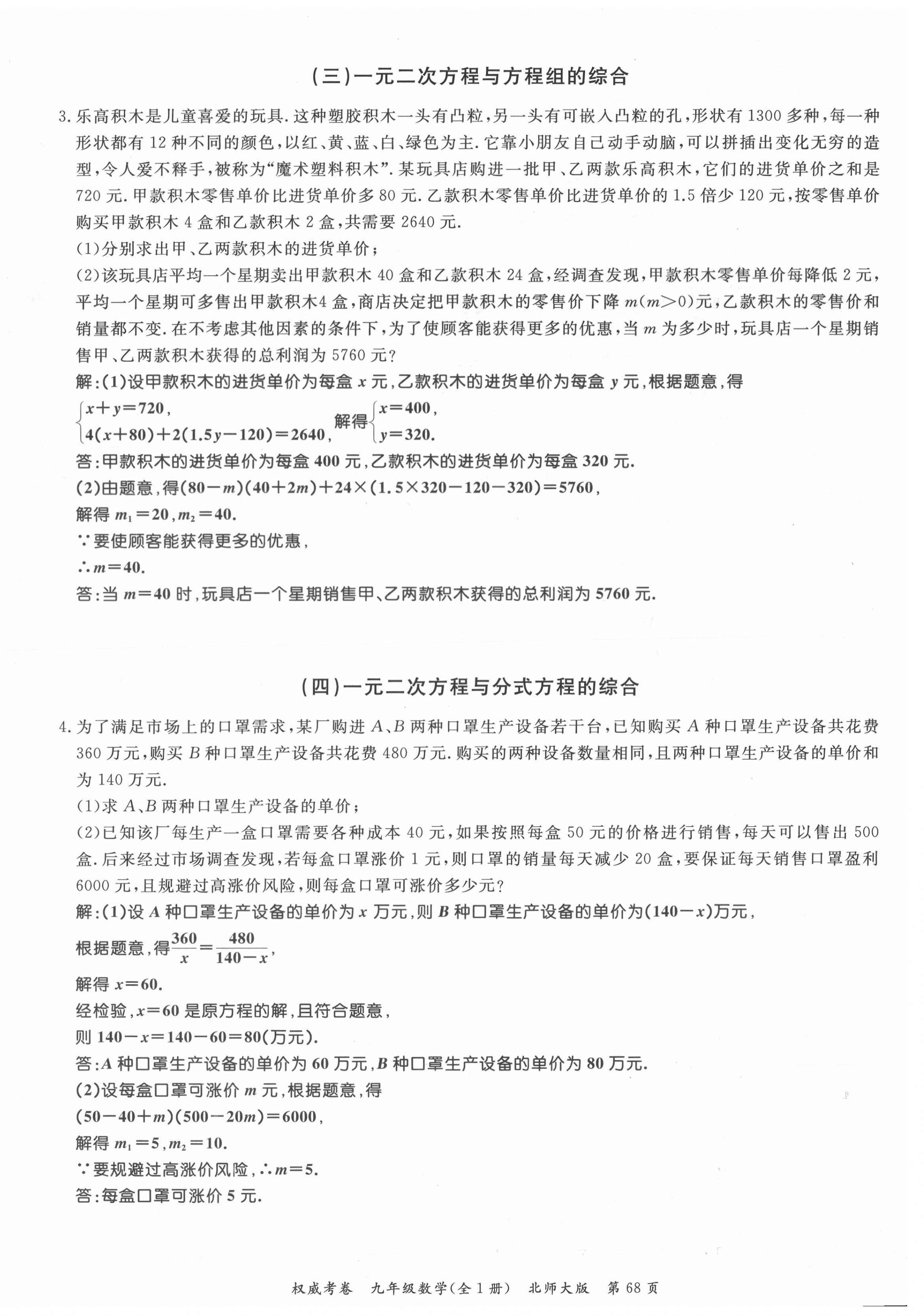 注:目前有些书本章节名称可能整理的还不是很完善,但都是按照顺序排列的,请同学们按照顺序仔细查找。练习册 2021年权威考卷九年级数学全一册北师大版 答案主要是用来给同学们做完题方便对答案用的,请勿直接抄袭。