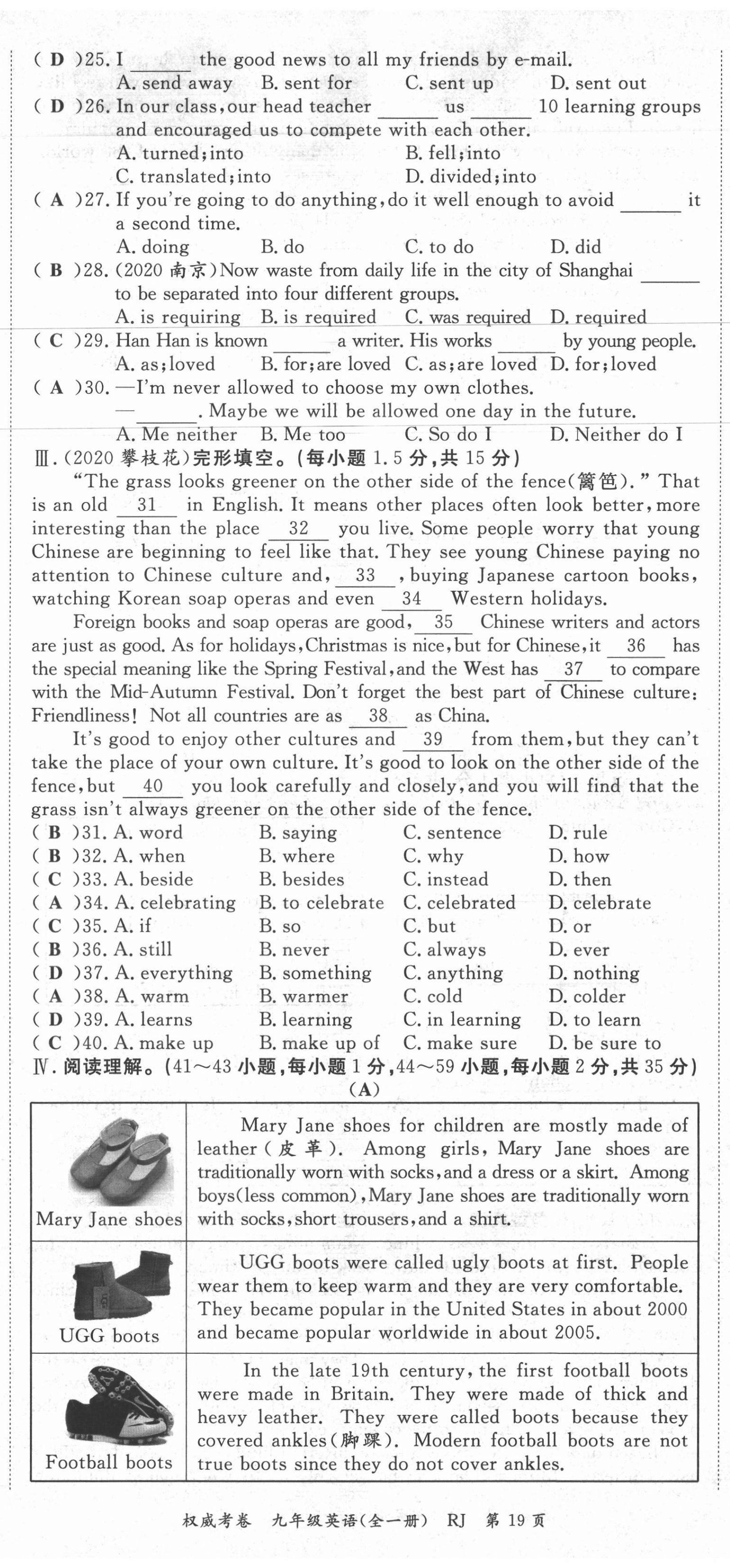 2021年权威考卷九年级英语全一册人教版