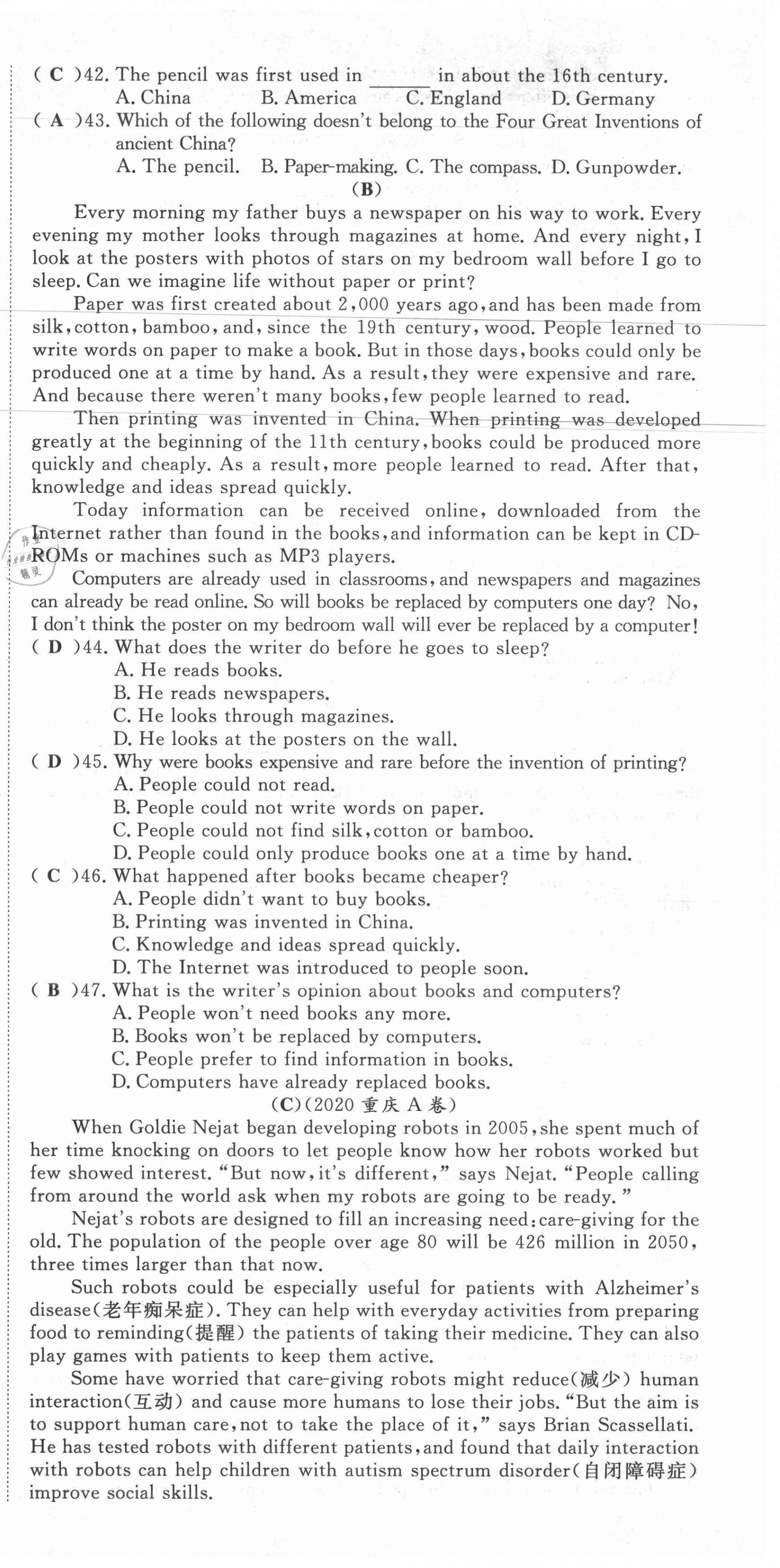 注:目前有些书本章节名称可能整理的还不是很完善,但都是按照顺序排列的,请同学们按照顺序仔细查找。练习册 2021年权威考卷九年级英语全一册人教版 答案主要是用来给同学们做完题方便对答案用的,请勿直接抄袭。