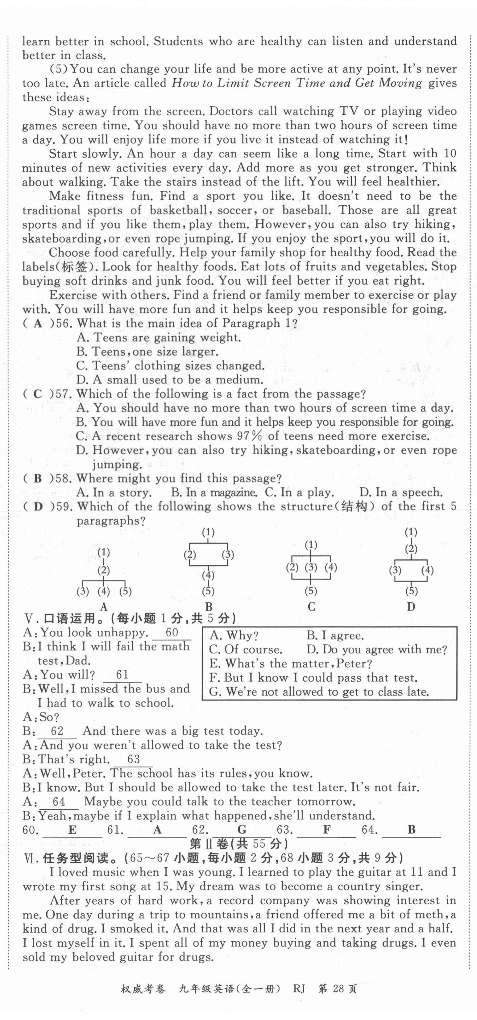 注:目前有些书本章节名称可能整理的还不是很完善,但都是按照顺序排列的,请同学们按照顺序仔细查找。练习册 2021年权威考卷九年级英语全一册人教版 答案主要是用来给同学们做完题方便对答案用的,请勿直接抄袭。