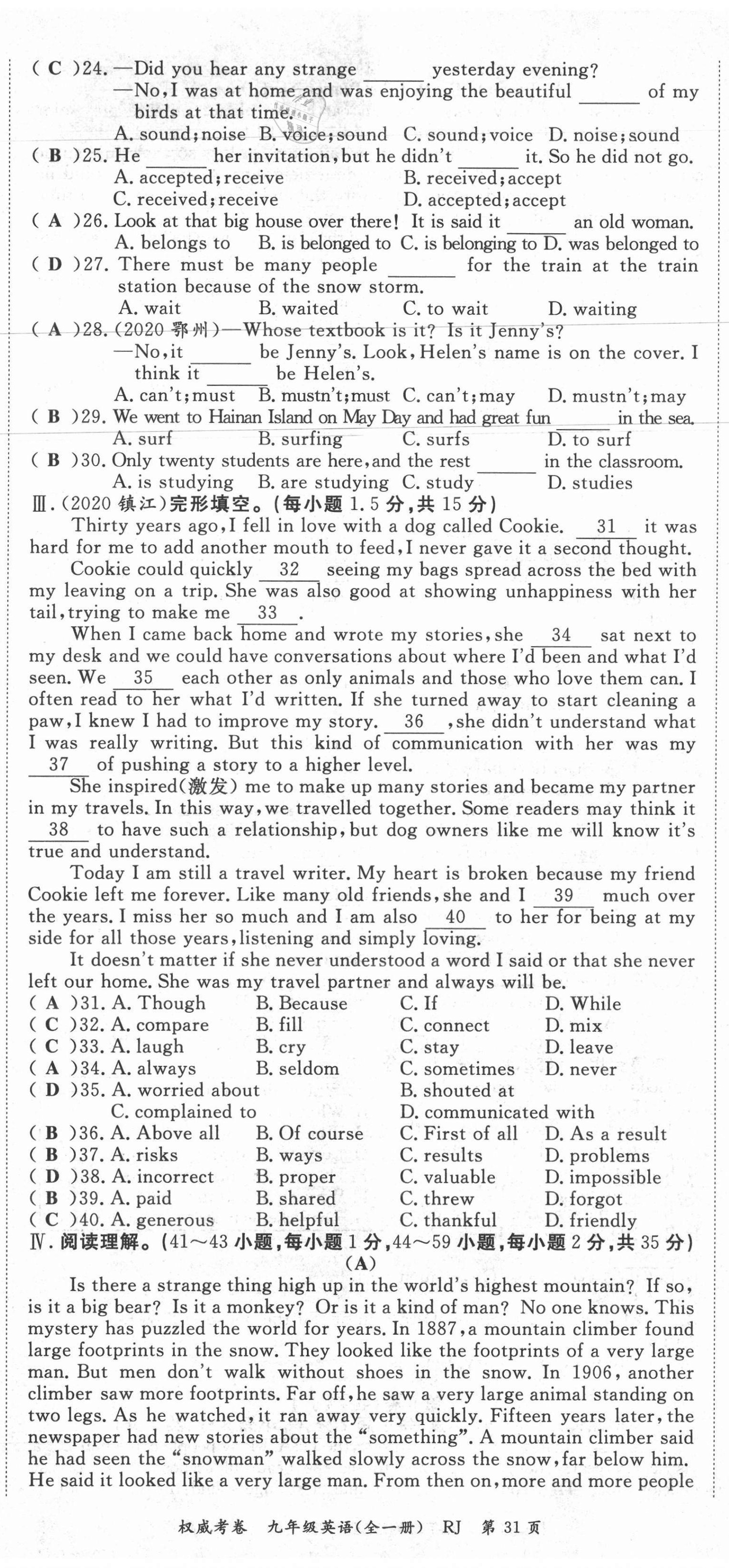 注:目前有些书本章节名称可能整理的还不是很完善,但都是按照顺序排列的,请同学们按照顺序仔细查找。练习册 2021年权威考卷九年级英语全一册人教版 答案主要是用来给同学们做完题方便对答案用的,请勿直接抄袭。