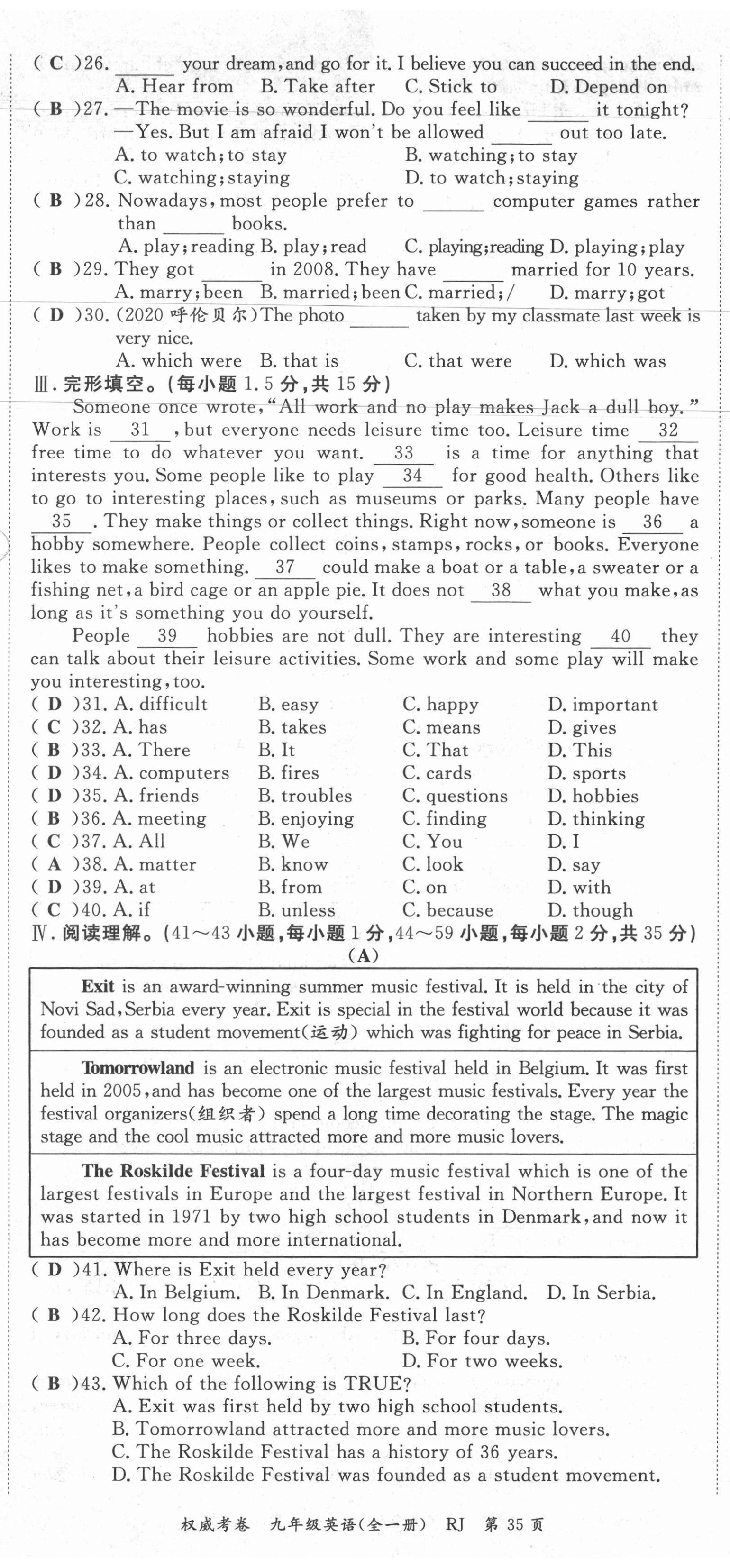 注:目前有些书本章节名称可能整理的还不是很完善,但都是按照顺序排列的,请同学们按照顺序仔细查找。练习册 2021年权威考卷九年级英语全一册人教版 答案主要是用来给同学们做完题方便对答案用的,请勿直接抄袭。