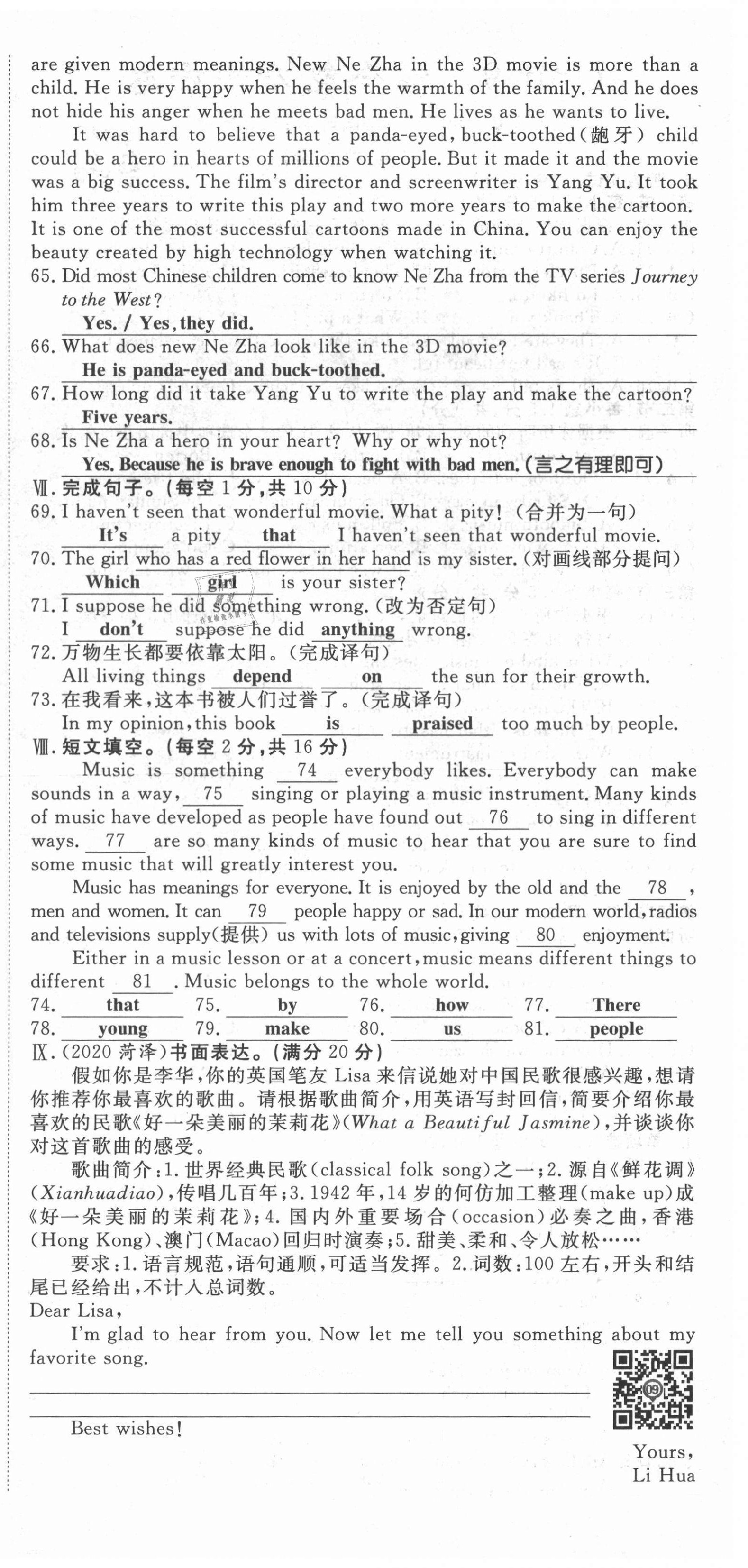 注:目前有些书本章节名称可能整理的还不是很完善,但都是按照顺序排列的,请同学们按照顺序仔细查找。练习册 2021年权威考卷九年级英语全一册人教版 答案主要是用来给同学们做完题方便对答案用的,请勿直接抄袭。