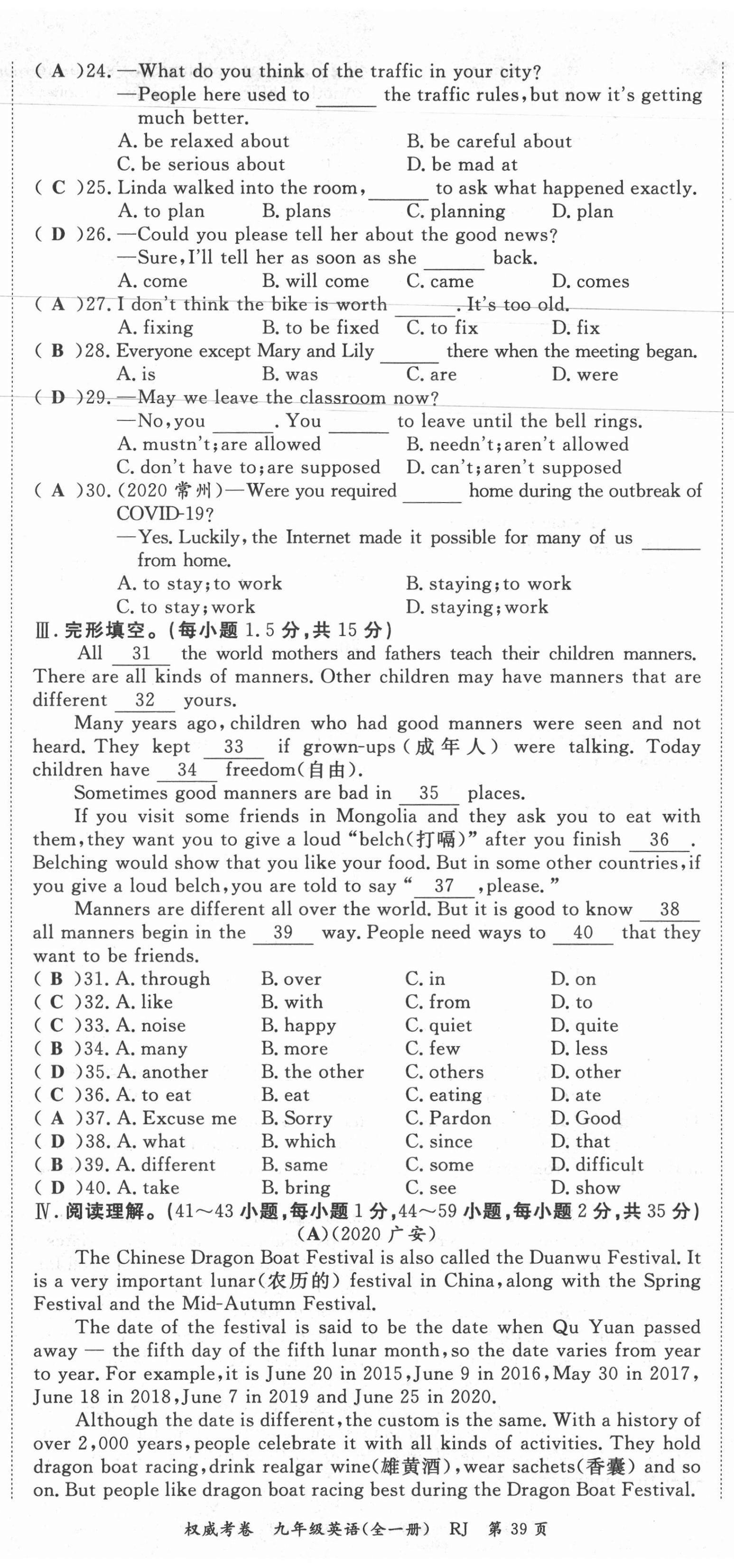 2021年权威考卷九年级英语全一册人教版
