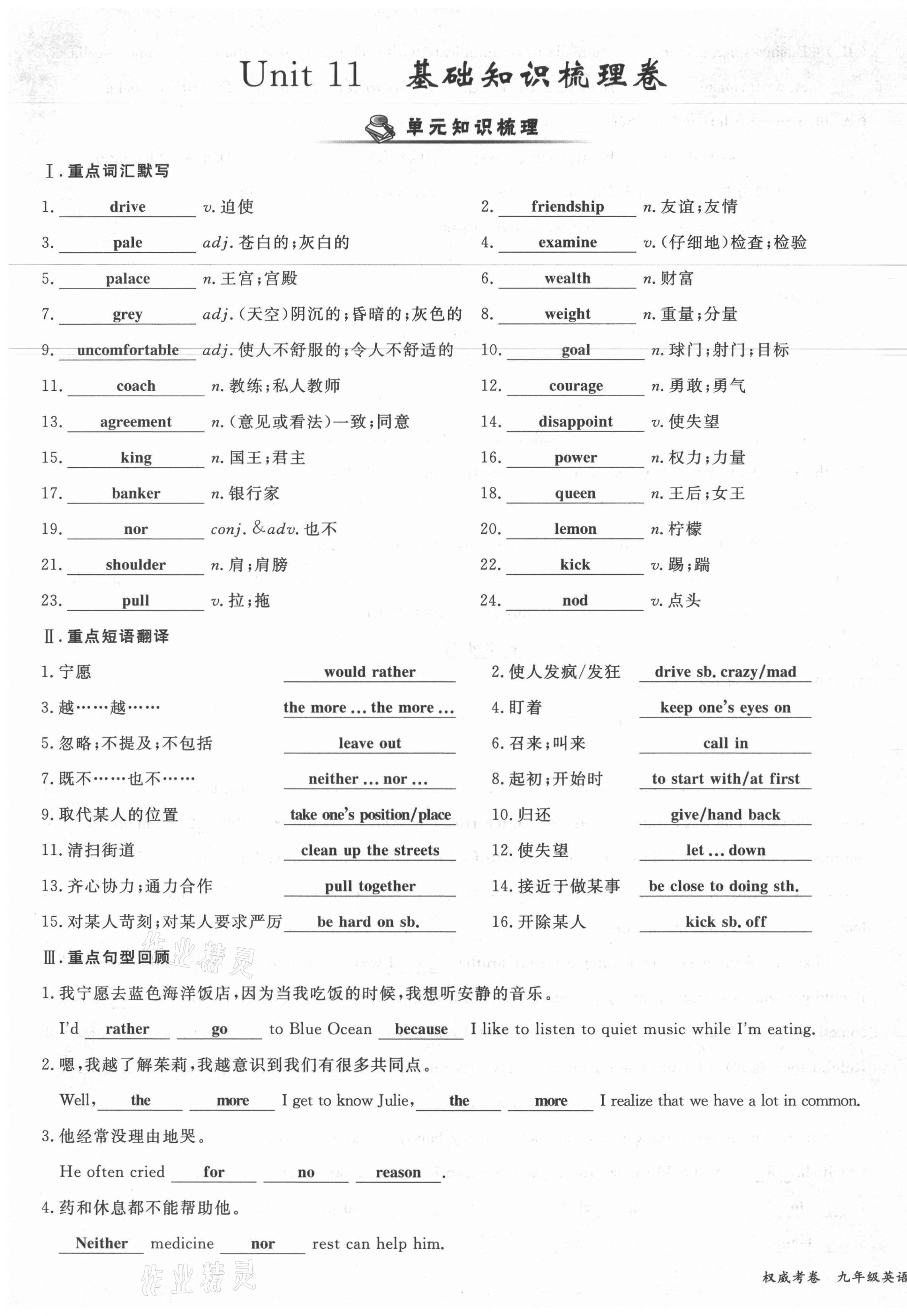 注:目前有些书本章节名称可能整理的还不是很完善,但都是按照顺序排列的,请同学们按照顺序仔细查找。练习册 2021年权威考卷九年级英语全一册人教版 答案主要是用来给同学们做完题方便对答案用的,请勿直接抄袭。