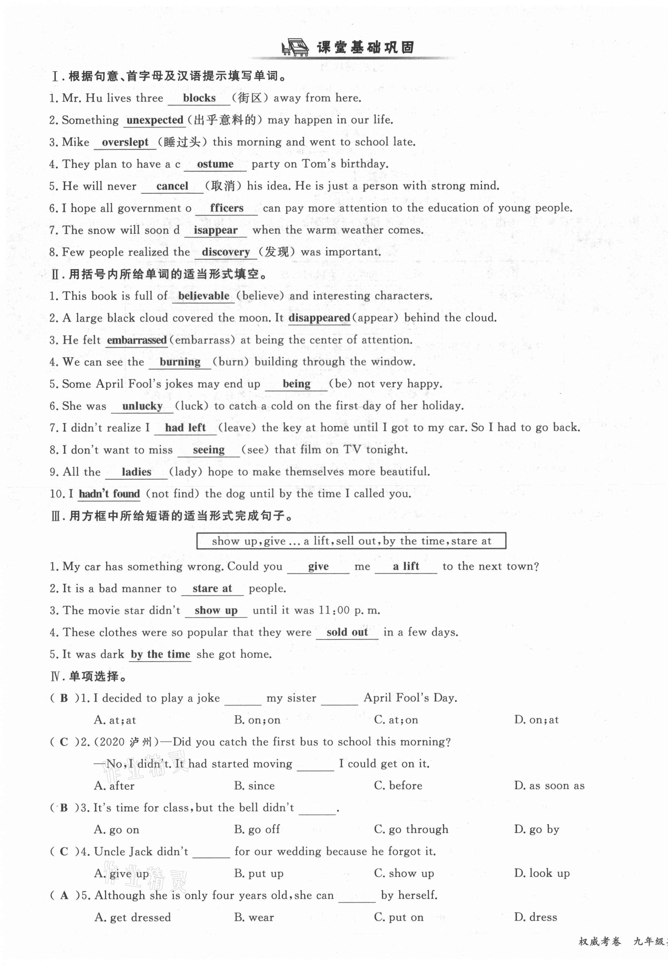 注:目前有些书本章节名称可能整理的还不是很完善,但都是按照顺序排列的,请同学们按照顺序仔细查找。练习册 2021年权威考卷九年级英语全一册人教版 答案主要是用来给同学们做完题方便对答案用的,请勿直接抄袭。