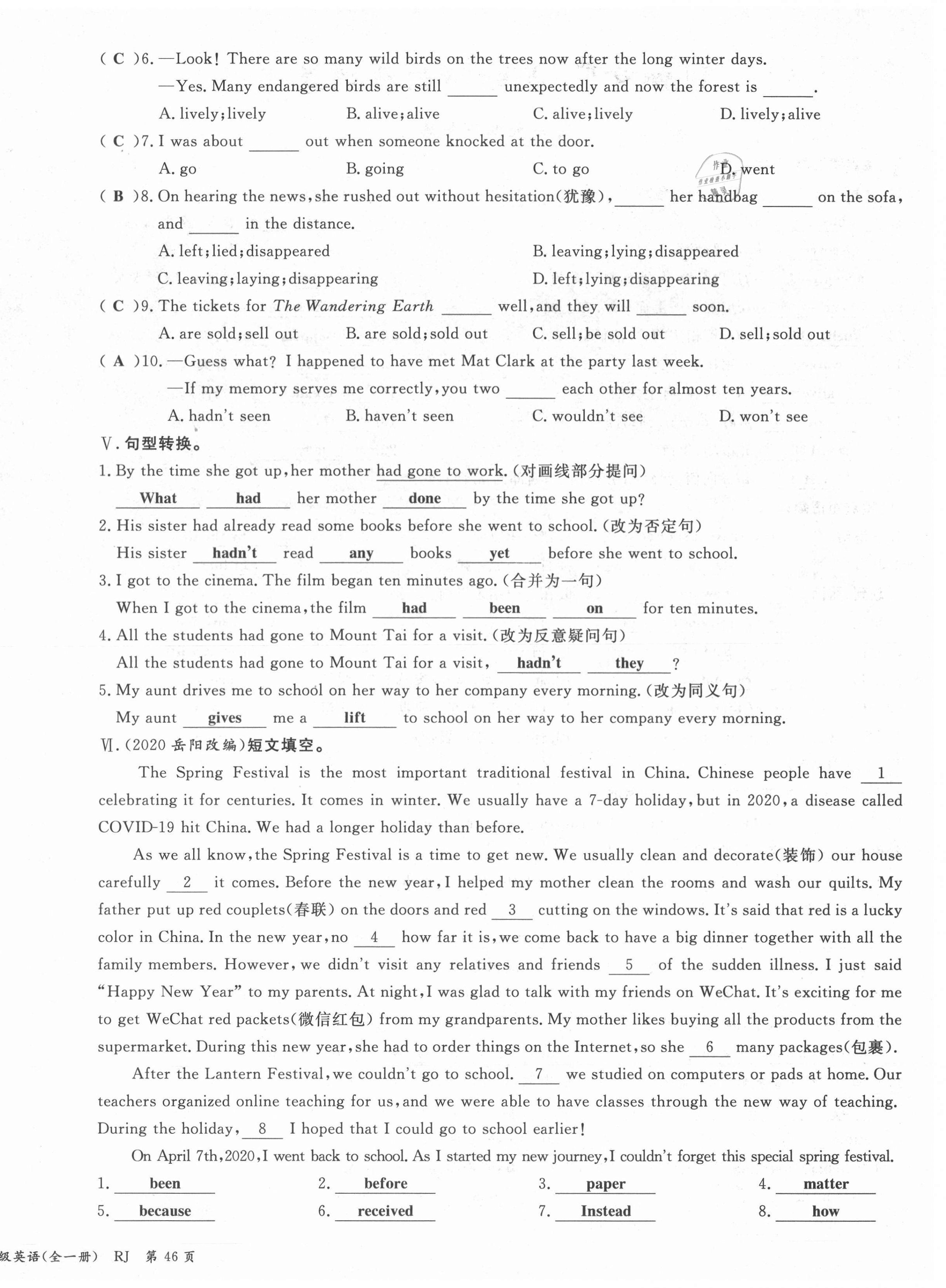 注:目前有些书本章节名称可能整理的还不是很完善,但都是按照顺序排列的,请同学们按照顺序仔细查找。练习册 2021年权威考卷九年级英语全一册人教版 答案主要是用来给同学们做完题方便对答案用的,请勿直接抄袭。