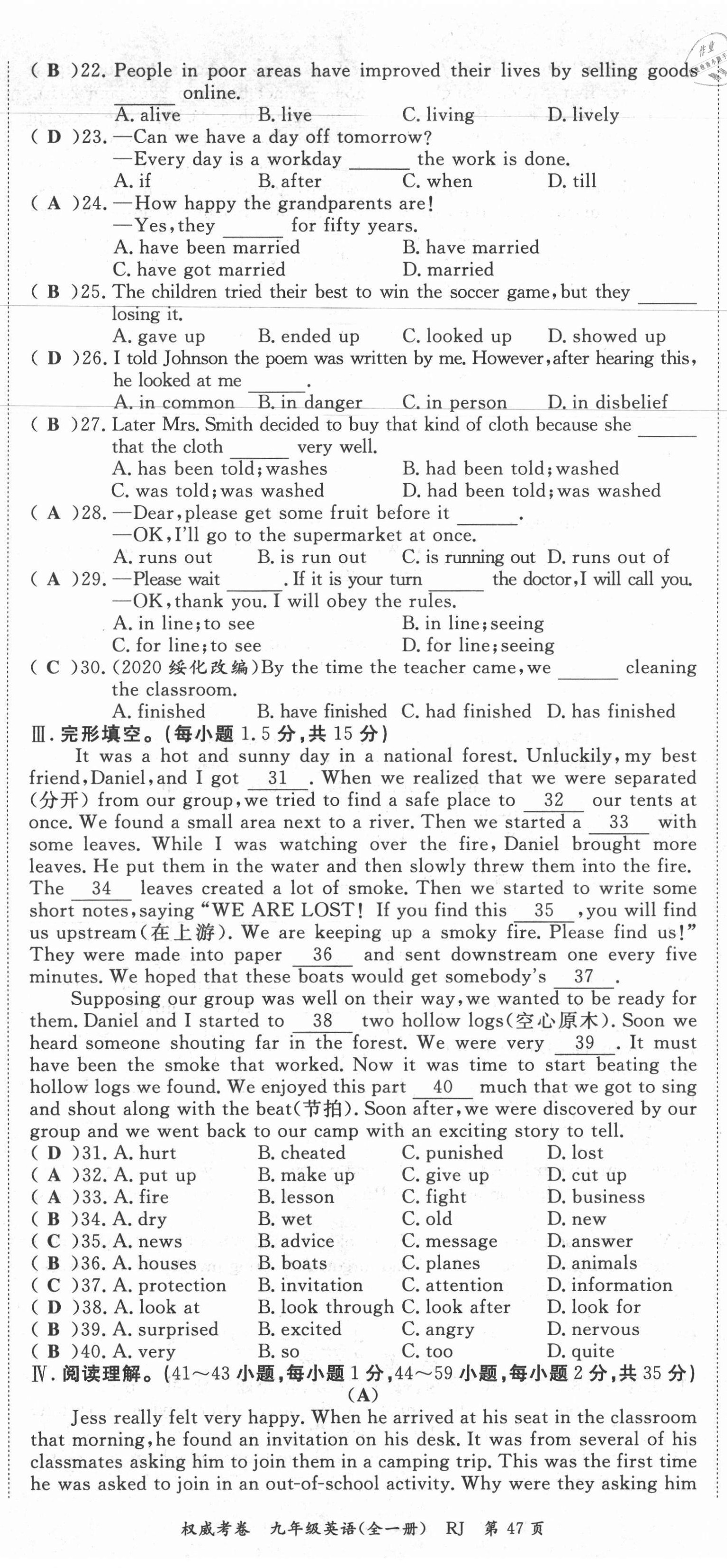 注:目前有些书本章节名称可能整理的还不是很完善,但都是按照顺序排列的,请同学们按照顺序仔细查找。练习册 2021年权威考卷九年级英语全一册人教版 答案主要是用来给同学们做完题方便对答案用的,请勿直接抄袭。