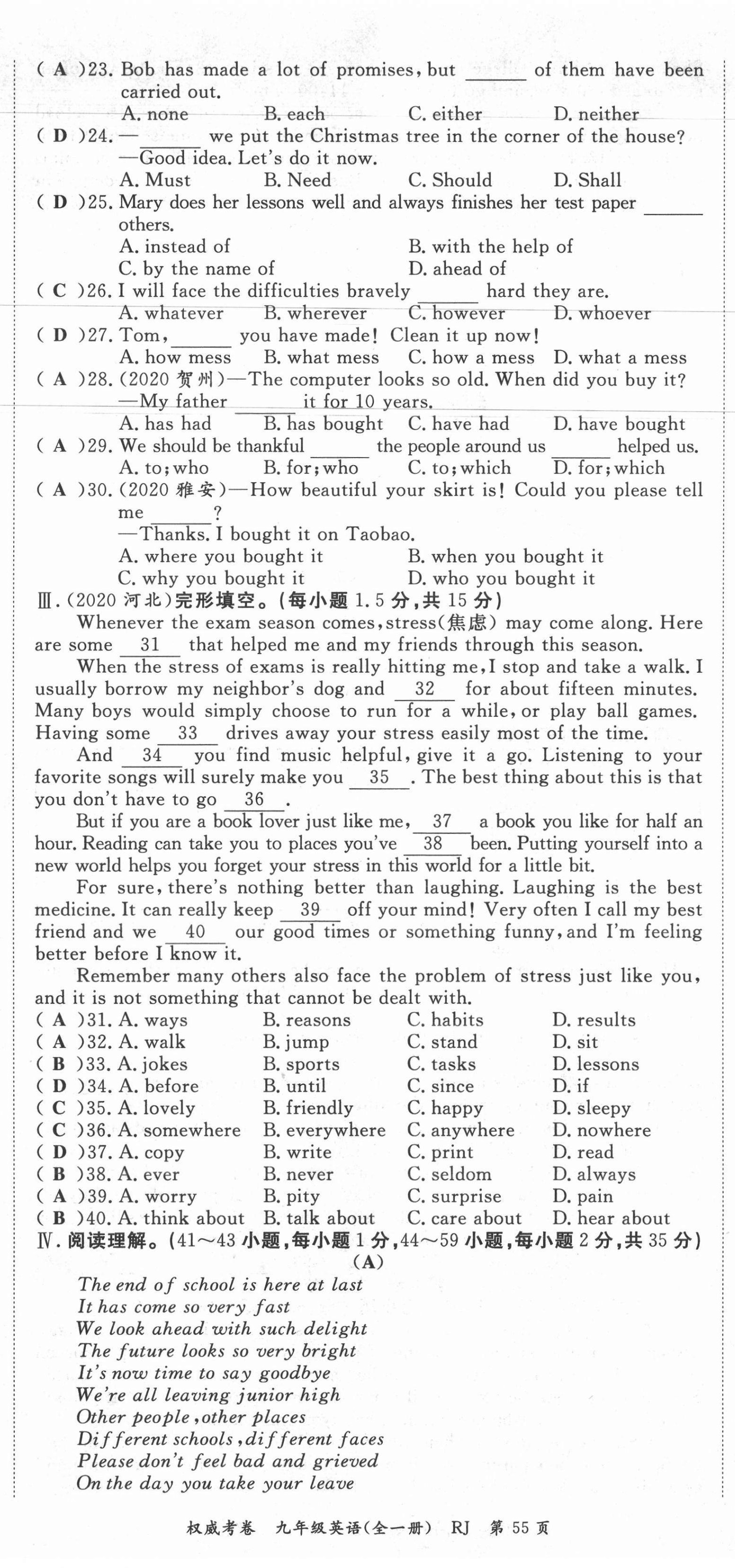 注:目前有些书本章节名称可能整理的还不是很完善,但都是按照顺序排列的,请同学们按照顺序仔细查找。练习册 2021年权威考卷九年级英语全一册人教版 答案主要是用来给同学们做完题方便对答案用的,请勿直接抄袭。