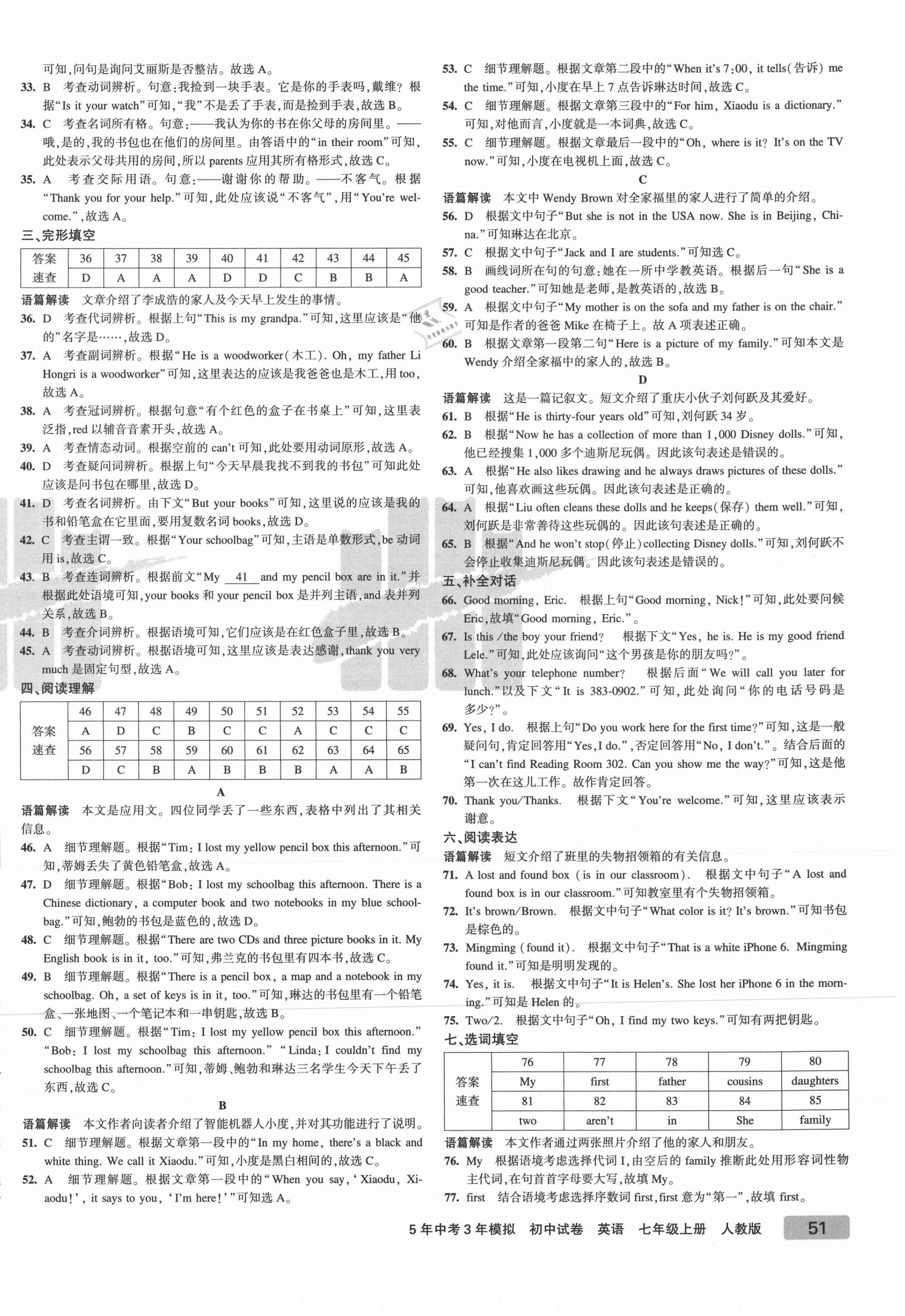 2021年5年中考3年模拟初中试卷七年级英语上册人教版