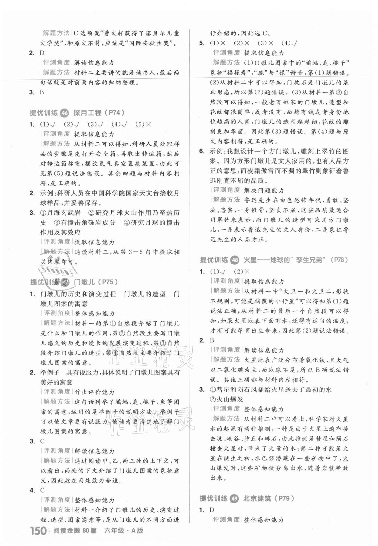 注:目前有些书本章节名称可能整理的还不是很完善,但都是按照顺序排列的,请同学们按照顺序仔细查找。练习册 2021年阅读金题80篇六年级语文人教版 答案主要是用来给同学们做完题方便对答案用的,请勿直接抄袭。