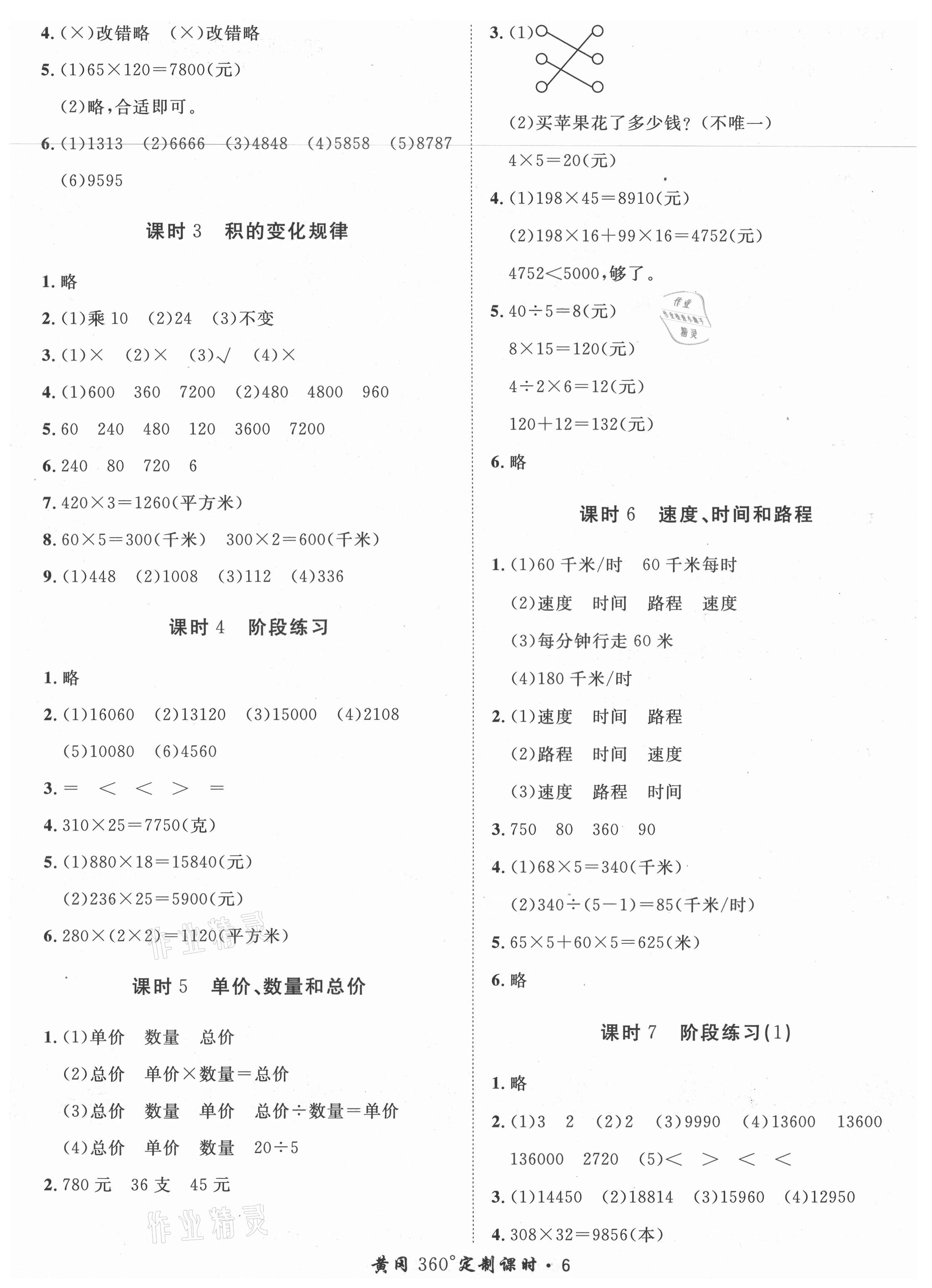 2021年黄冈360定制课时四年级数学上册人教版湖南专版