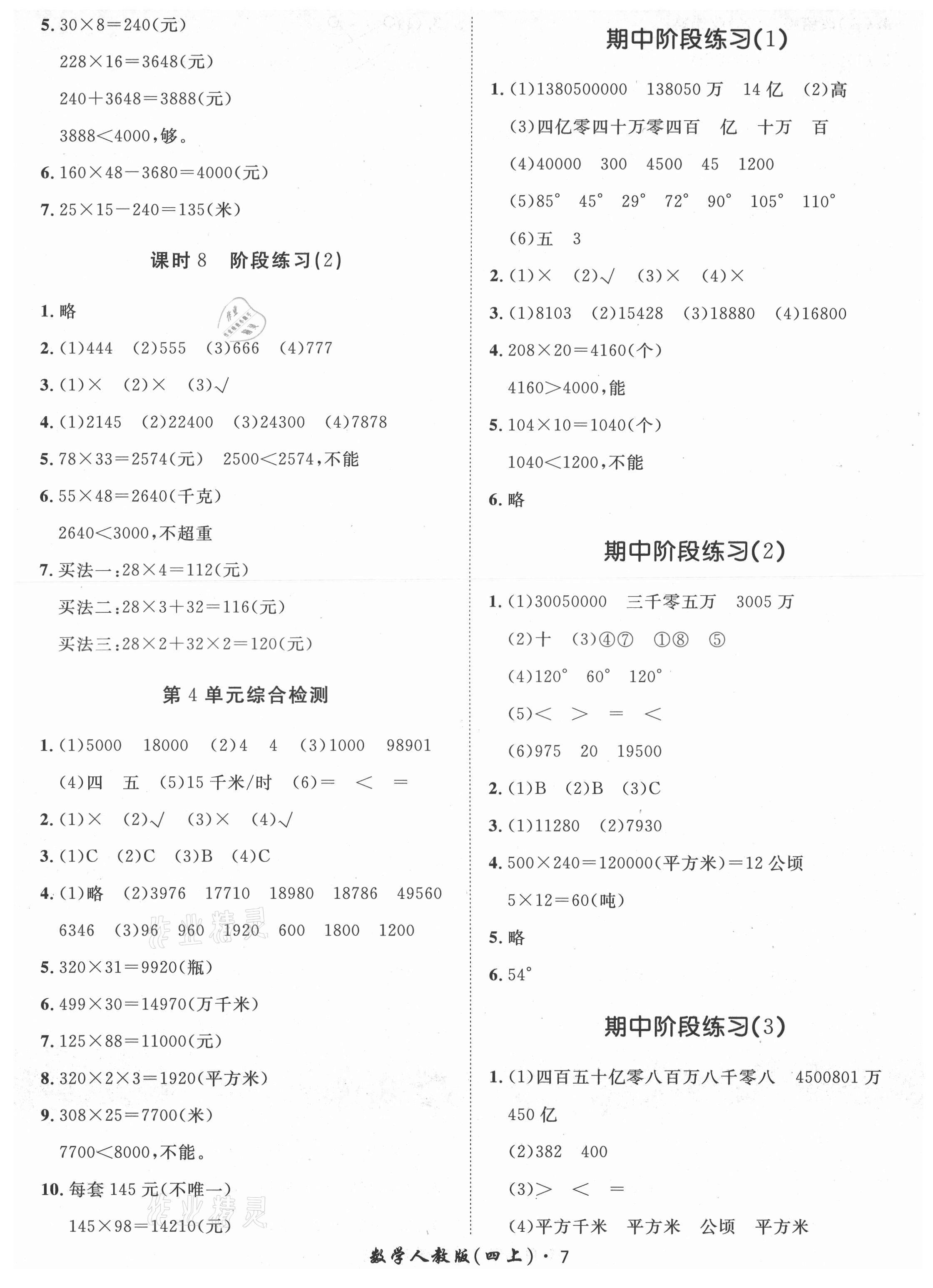 2021年黄冈360定制课时四年级数学上册人教版湖南专版