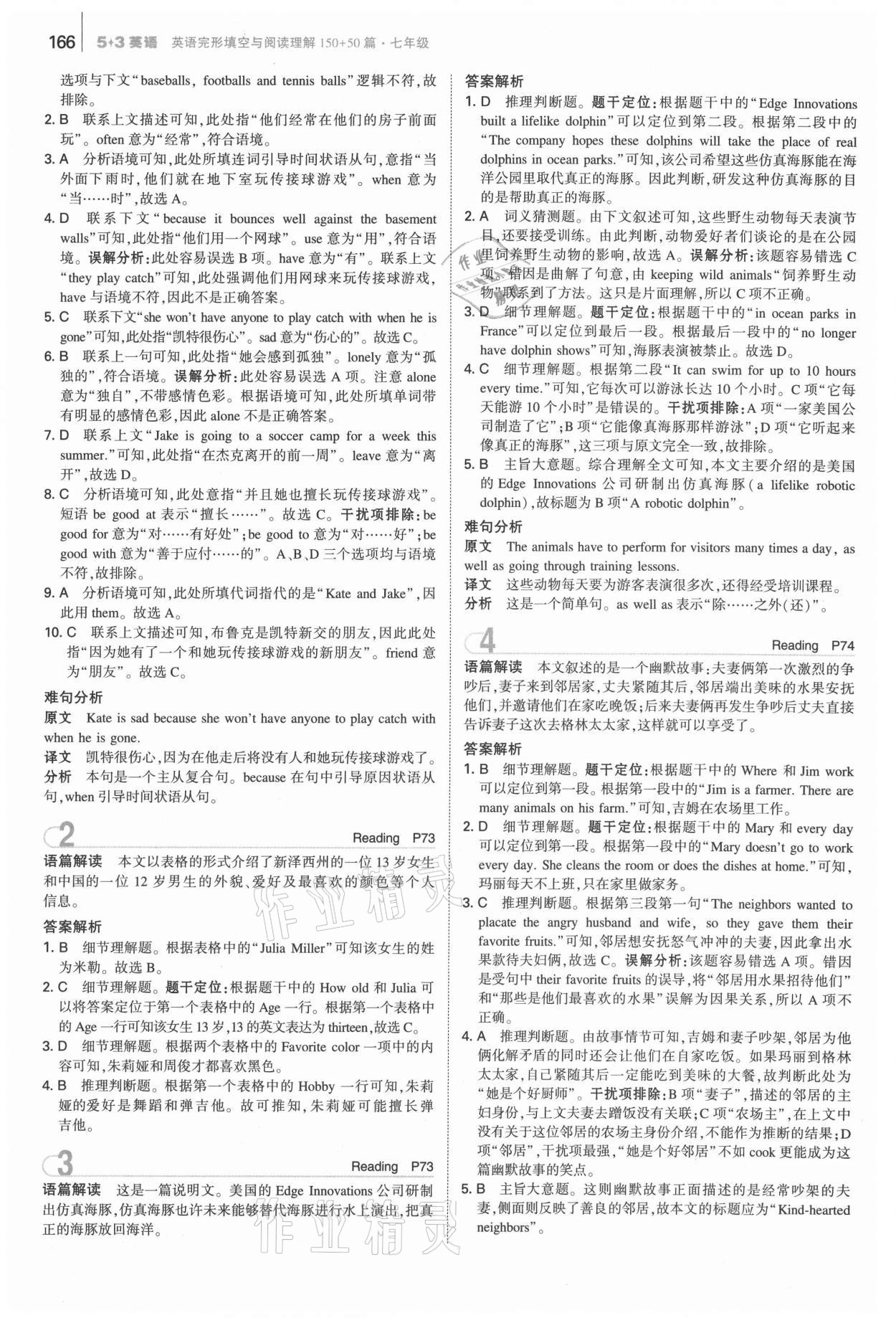 注:目前有些书本章节名称可能整理的还不是很完善,但都是按照顺序排列的,请同学们按照顺序仔细查找。练习册 2021年53English七年级英语完形填空与阅读理解150加50篇 答案主要是用来给同学们做完题方便对答案用的,请勿直接抄袭。
